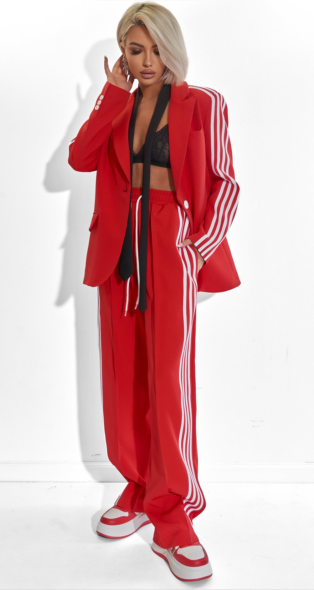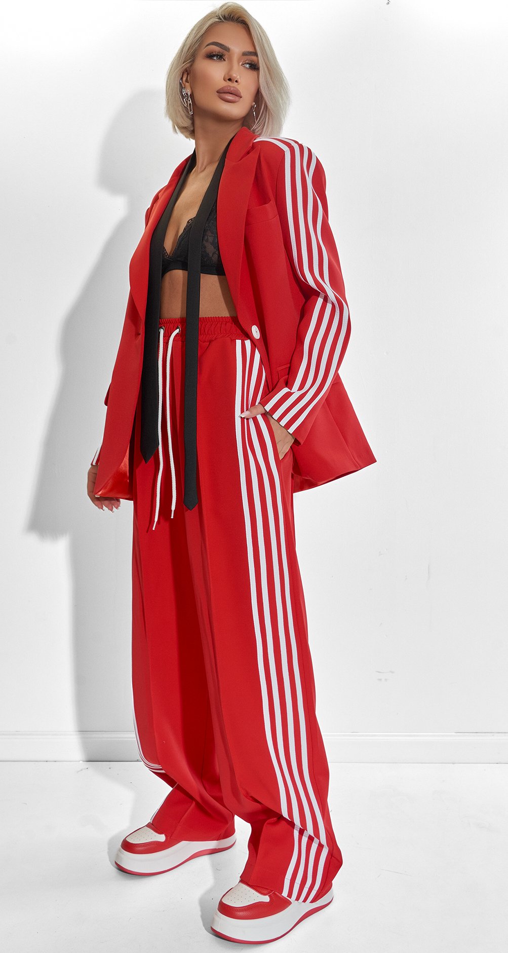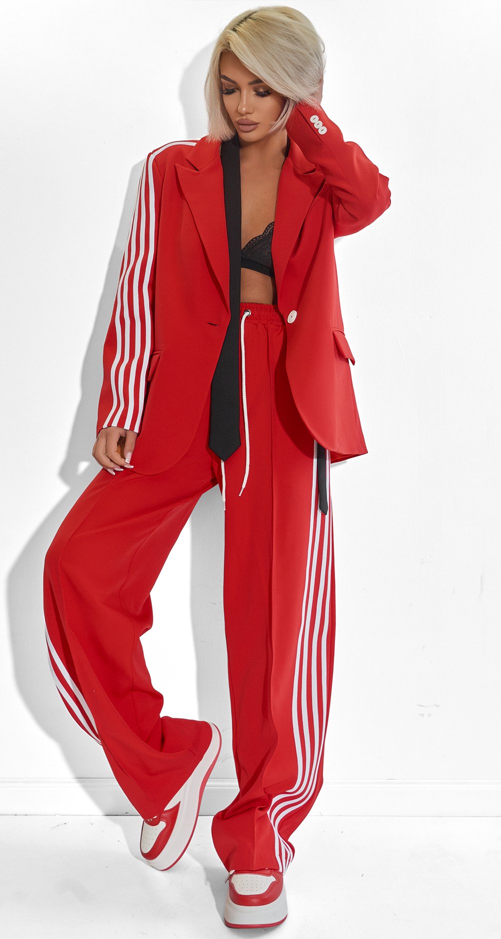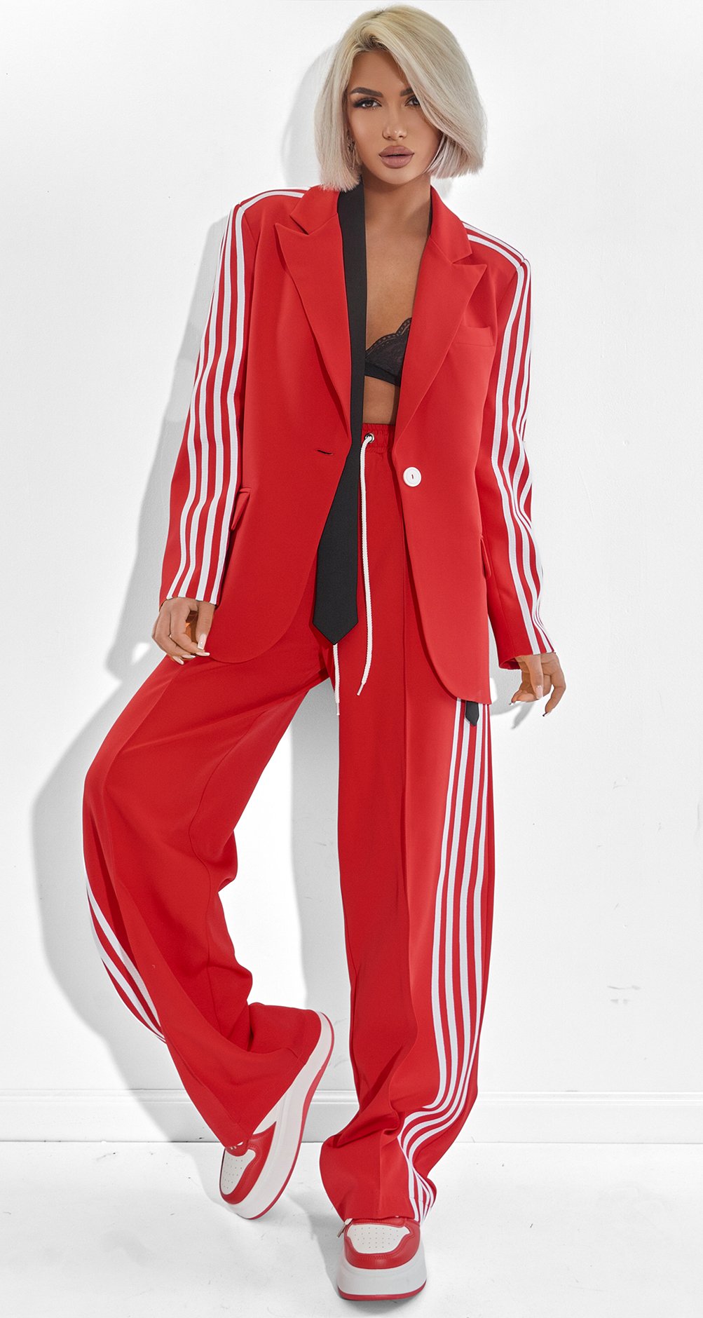 Цей образ – справжній рівень Expert у поєднанні стилів. Коли класична костюмна тканина отримує динаміку лампасів, народжується нова класика – зухвала, дорога та неймовірно стильна. Це вже не просто спорт-шик, це Business Sport, який підкорює вулиці великих міст.