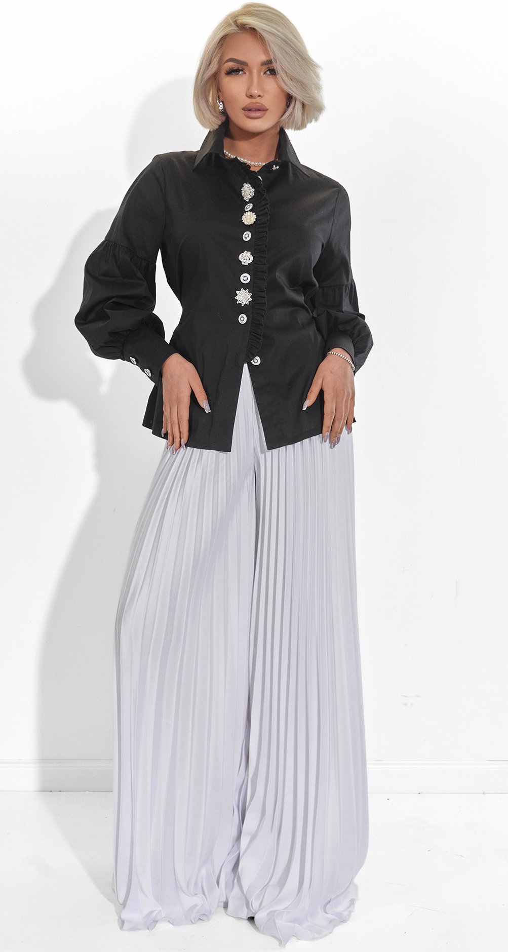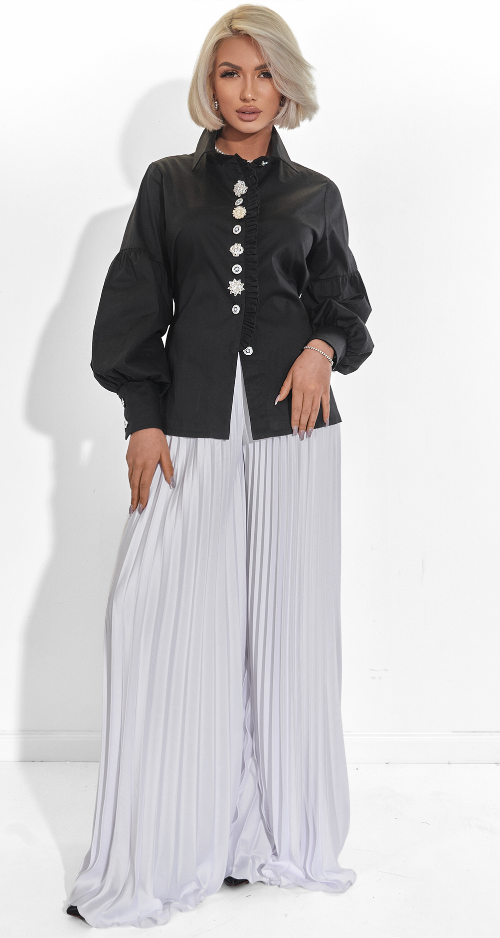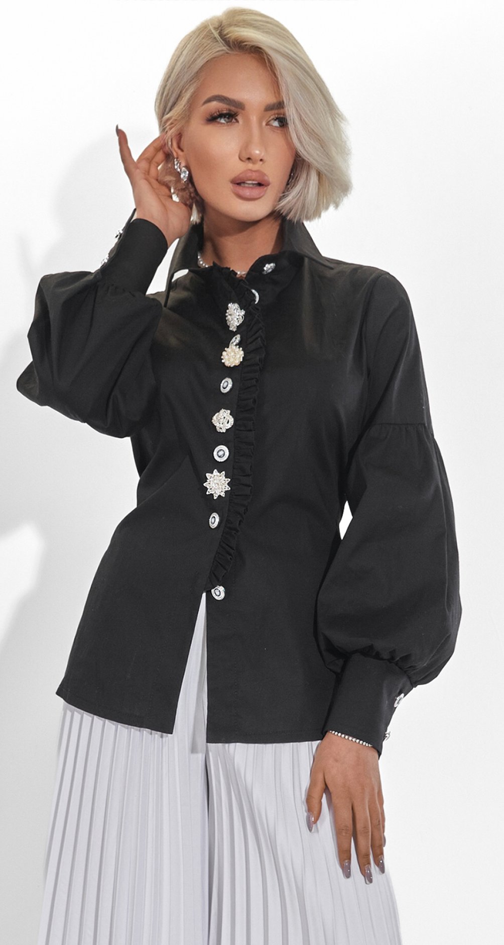 Ця блуза-сорочка – справжній ювелірний виріб у гардеробі. Поєднання натуральних матеріалів та акцентного декору робить її ідеальним рішенням для тих, хто цінує стиль smart luxury.