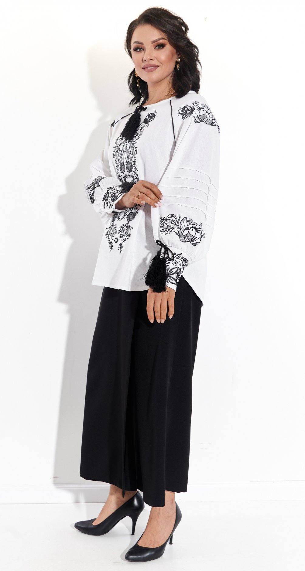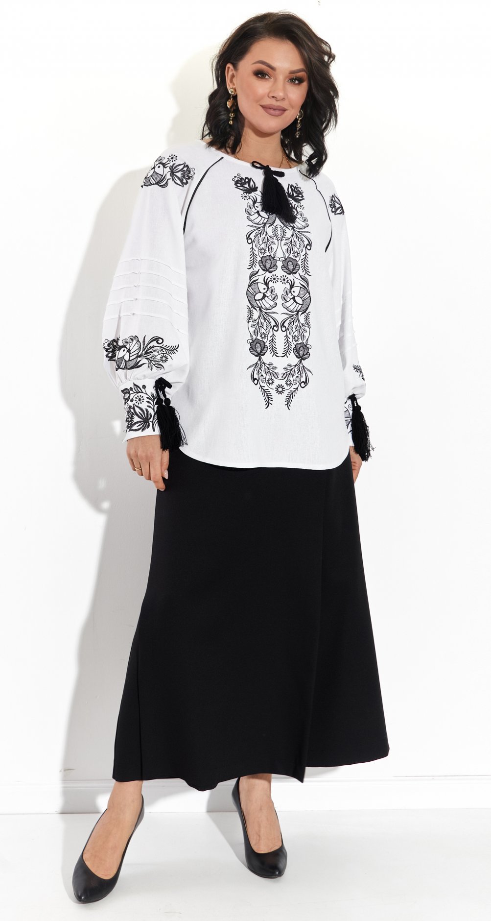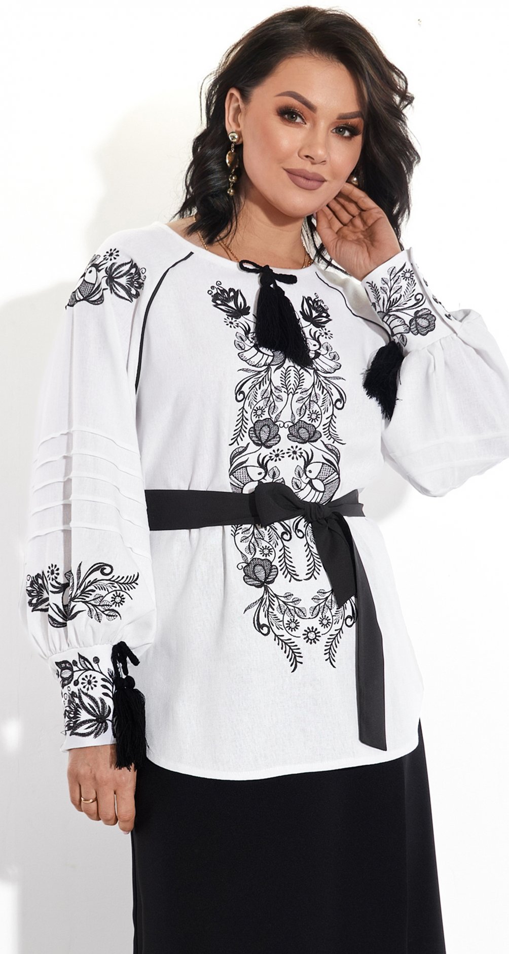 Класичний крій з пишними рукавами та акуратною горловиною забезпечує свободу рухів та універсальність у поєднаннях. Чорно-біла кольорова гама робить цю вишиванку неймовірно практичною для вашого гардеробу. Вона легко комбінується зі спідницями, брюками різних кольорів та фасонів, дозволяючи створювати безліч модних образів – від повсякденних до ошатних.