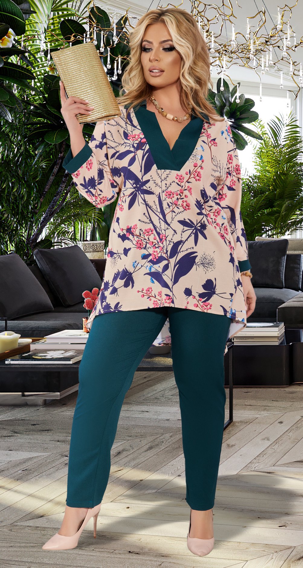 Блуза пошита з непрозорої тканини, що летить, абрюки з щільної, але не товстої костюмної тканини!