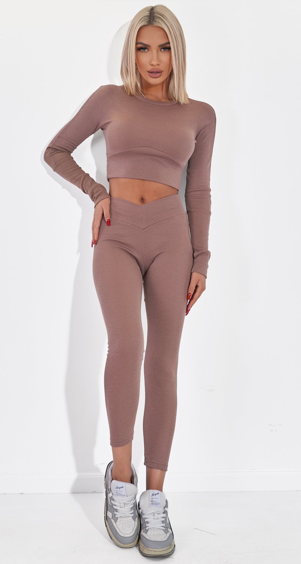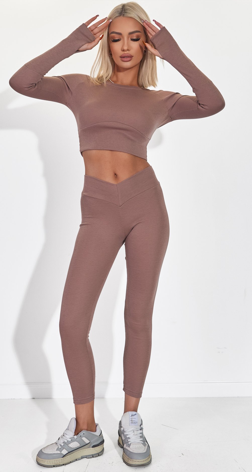 Кроп-топ з довгим рукавом та легінси з Оригінальною лінією поясу: Спортивний шик, який ідеально сідає по фігурі, візуально витягаючи силует.