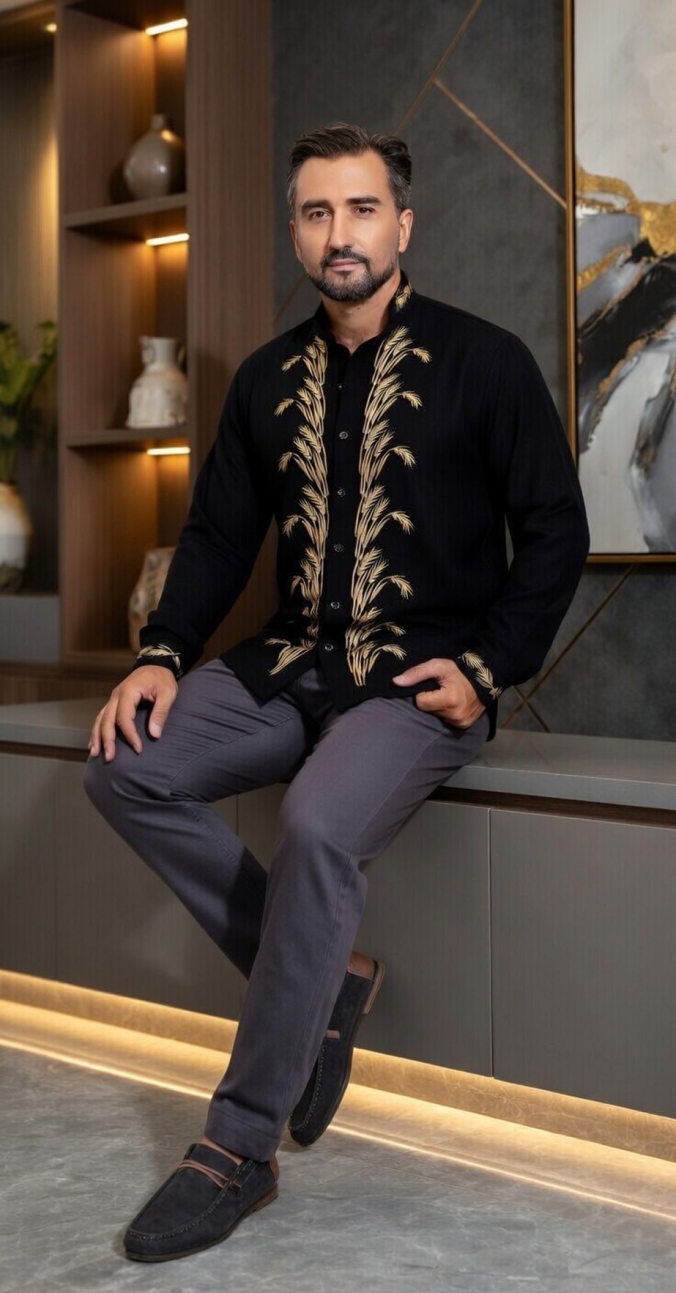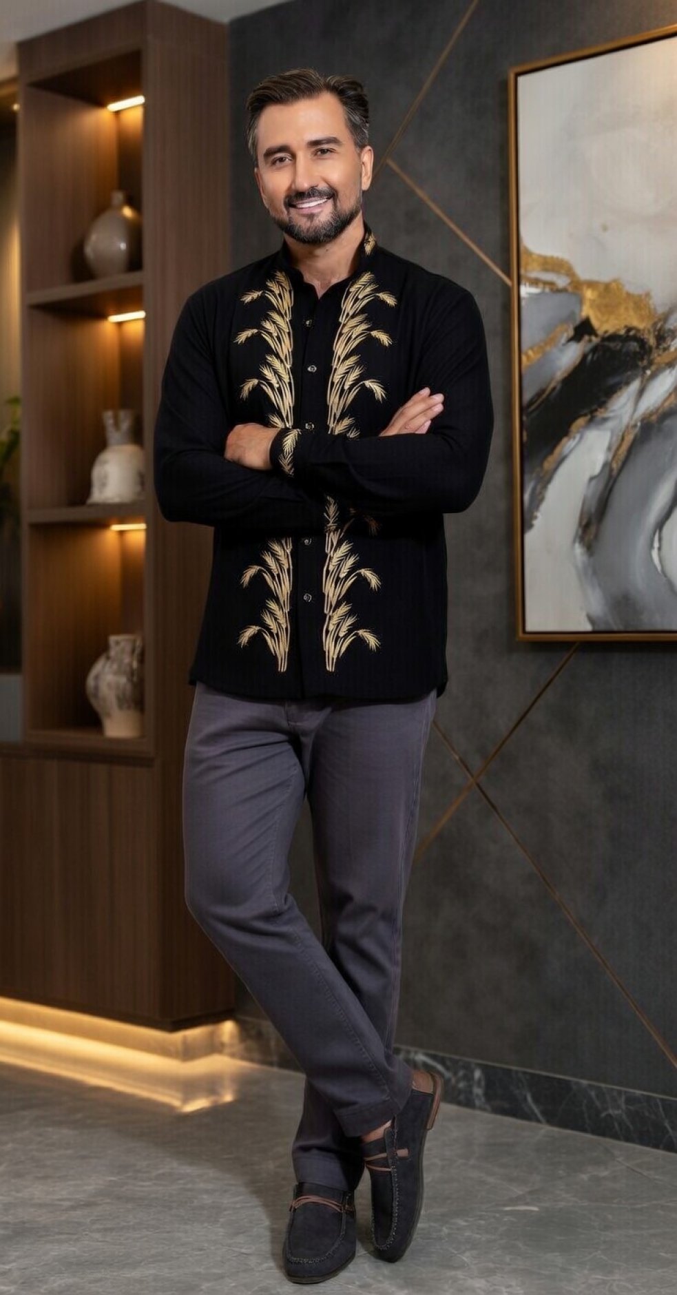 Ця ексклюзивна чоловіча вишиванка виконана з натурального льону, який забезпечує комфорт і легкість навіть у найспекотніші дні. У центрі уваги – розкішний візерунок із колосків пшениці, вишитий золотистою ниткою. Цей орнамент, що символізує родючість, багатство та життєву силу, робить "Мирослава" не просто одягом, а справжнім оберегом.