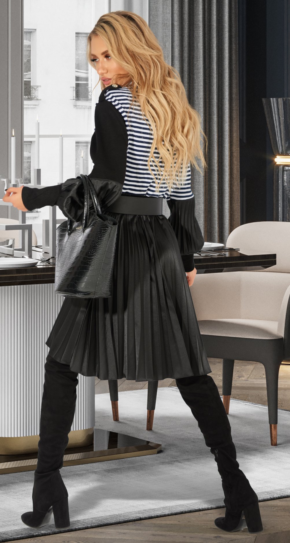Комбінований верх — із в'язки та спідниця в складку гофре з тканини, що імітує шкіру!