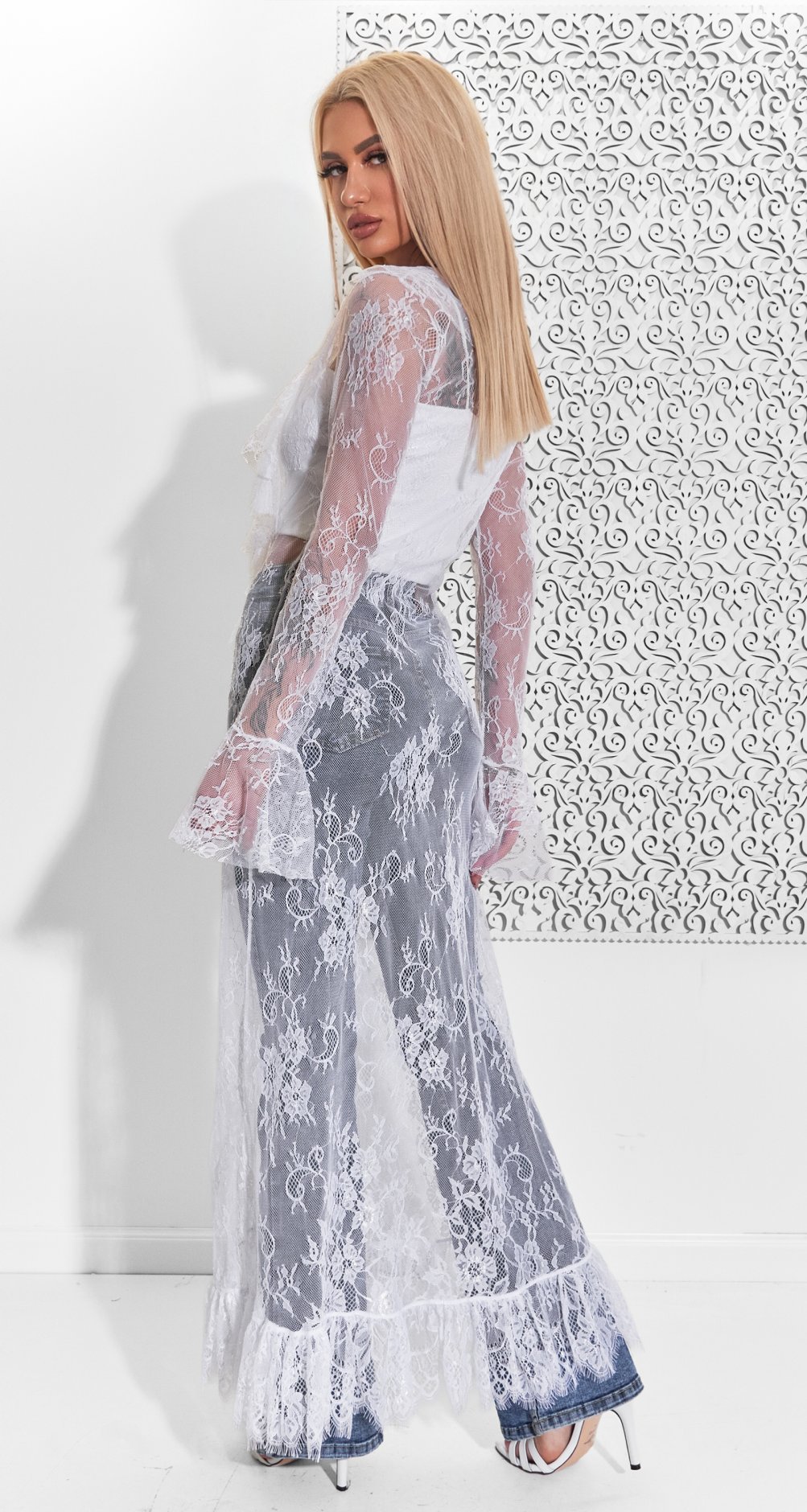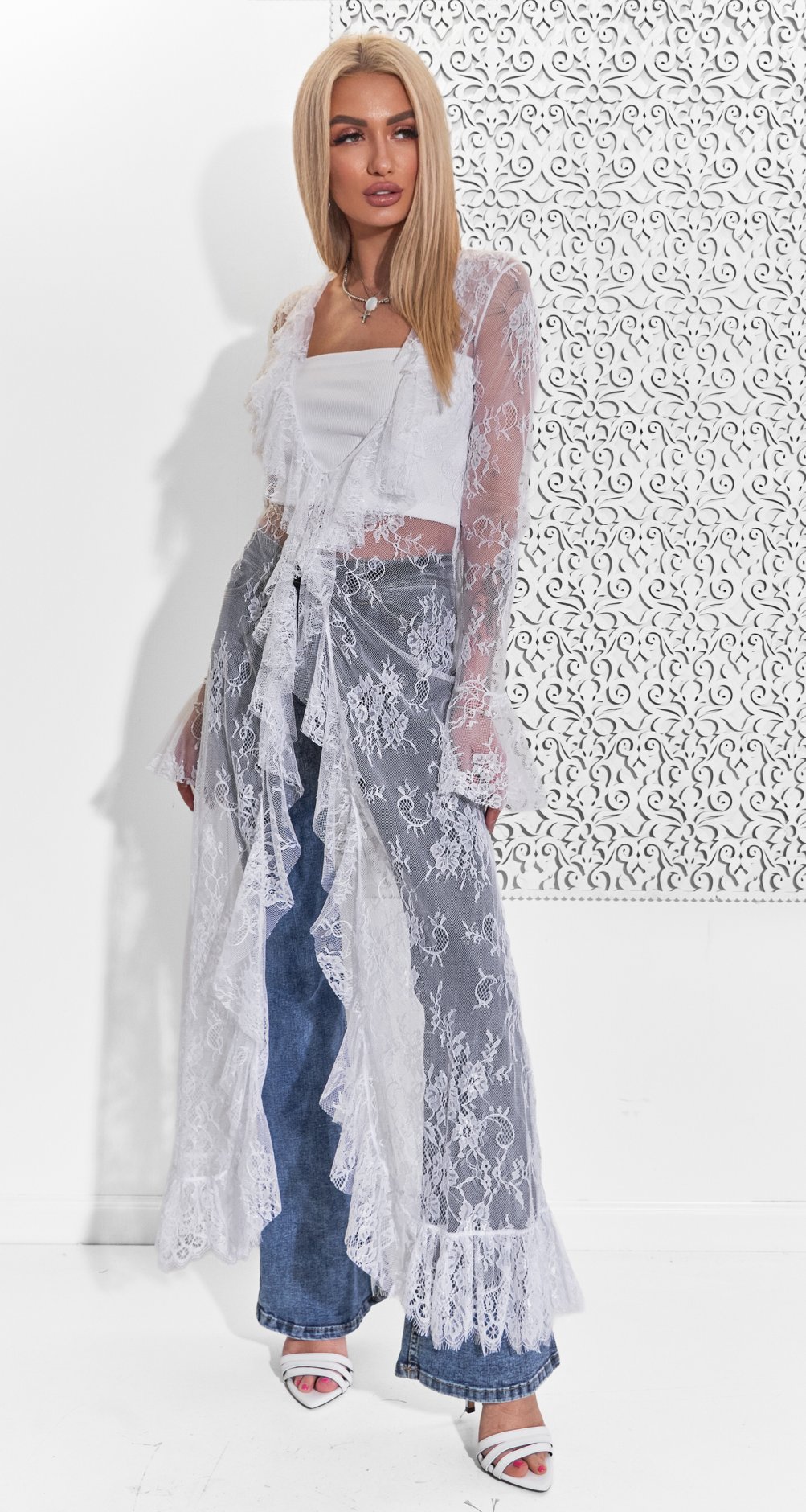 Напівпрозора мереживна туніка – ідеальний акцент для романтичного та зухвалого образу. Гра світла, рюші та вишуканий крій створюють вау-ефект при кожному русі. Носіть його з джинсами, шортами або купальником - і будьте кожного разу різною, але завжди незабутньою.
