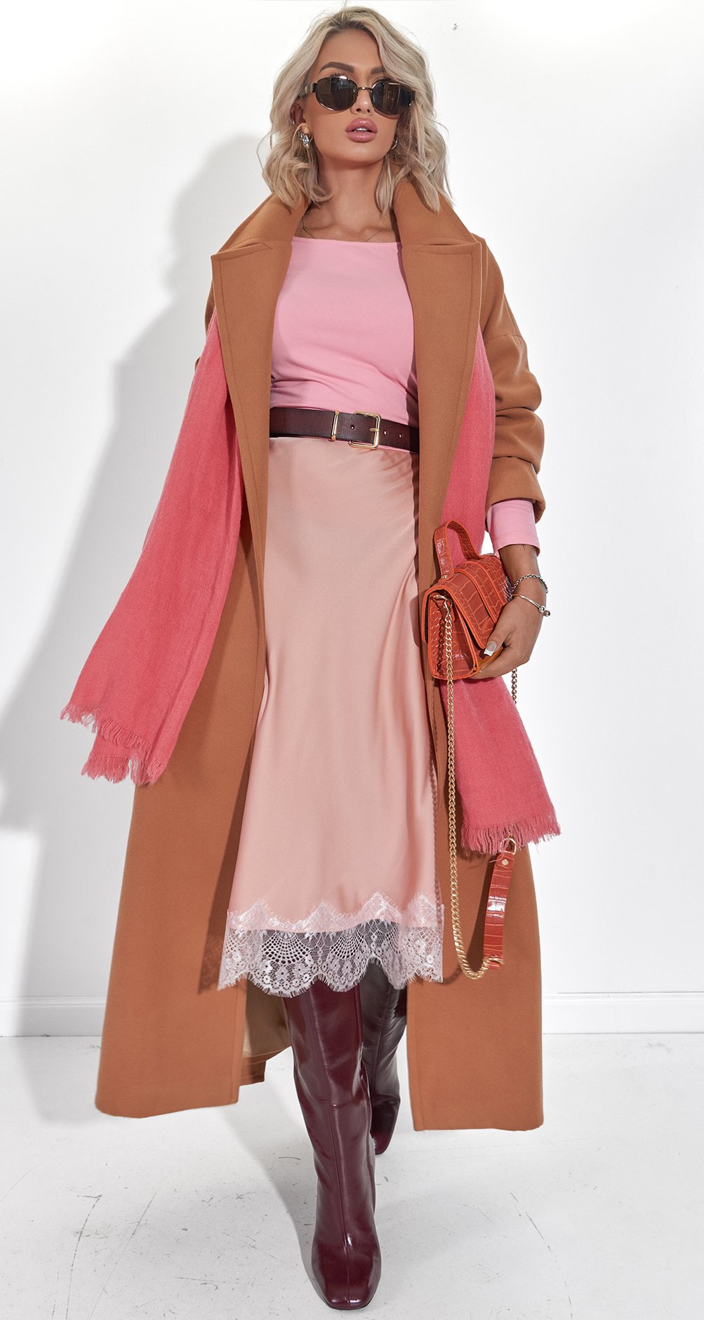 Представляємо хіт, який підкорив серця всіх модниць: Шовкова спідниця-міді, скроєна по косій, з розкішним мереживним подолом. Ця спідниця – еталон елегантності та чуттєвості, ідеальний вибір для створення незабутніх образів.
