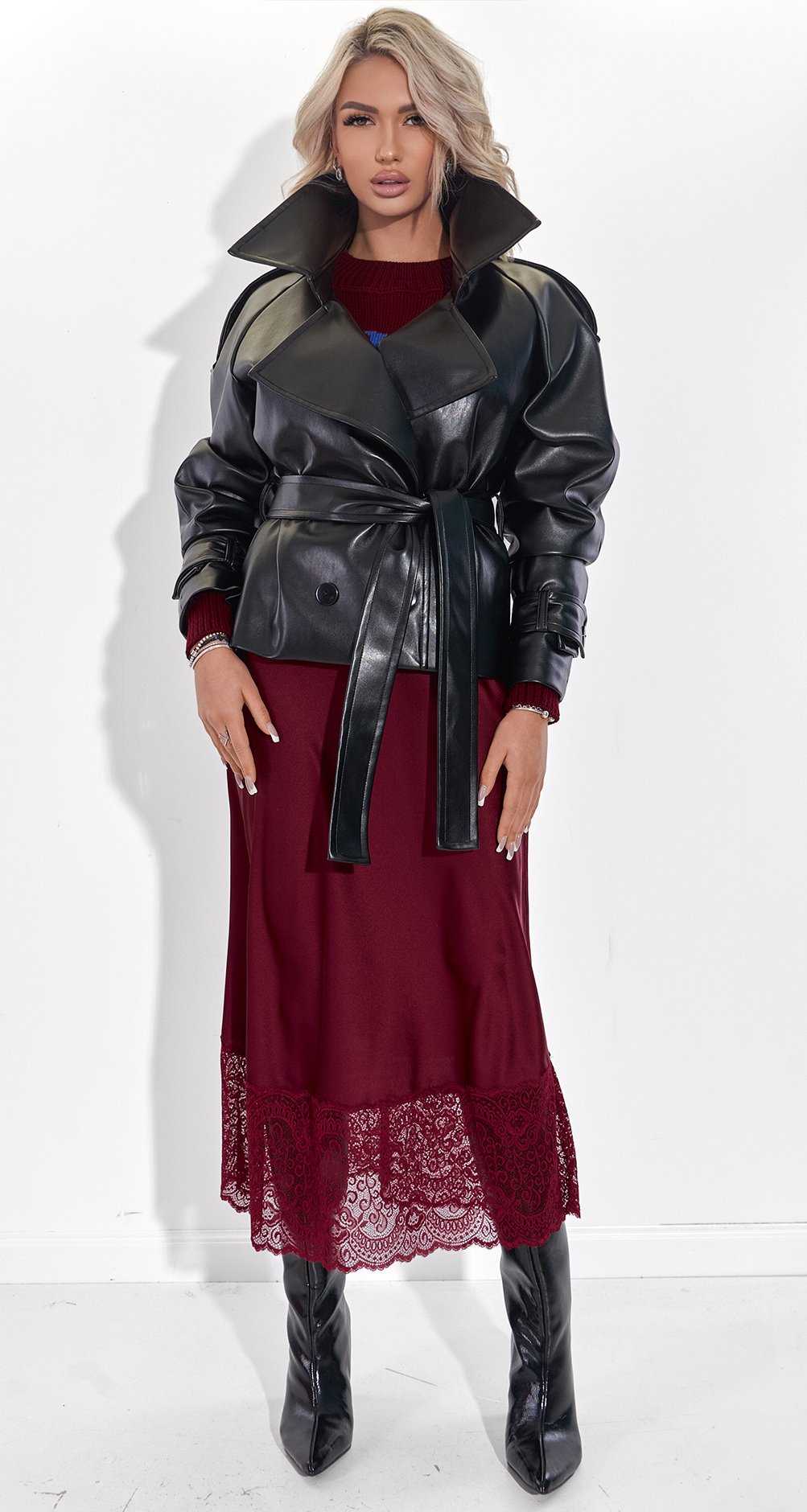 Як на фото, спідниця чудово поєднується з об'ємною шкіряною курткою та високими чоботями для створення сміливого, міського образу, або з легкою блузою та човниками для романтичного побачення. Це Ваш інструмент для стилю від повсякденного шику до вечірнього гламуру.