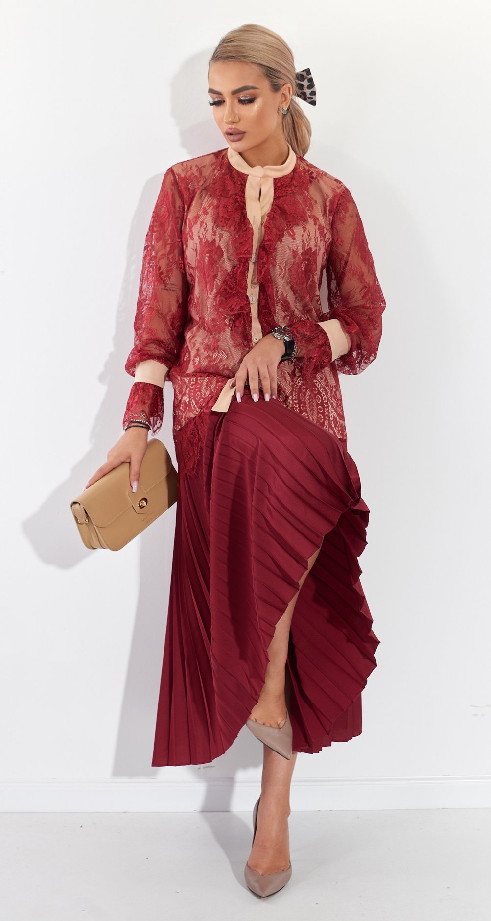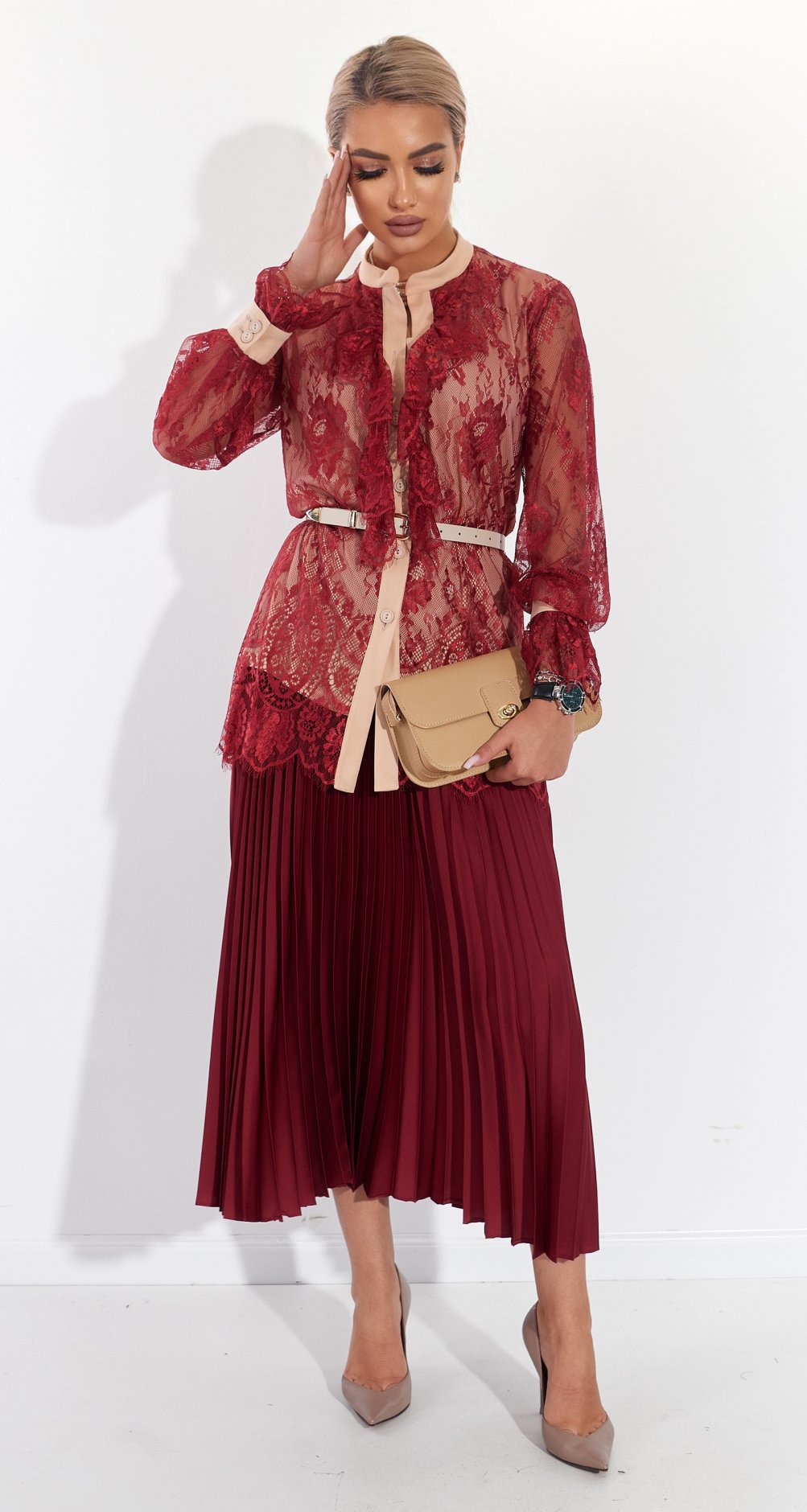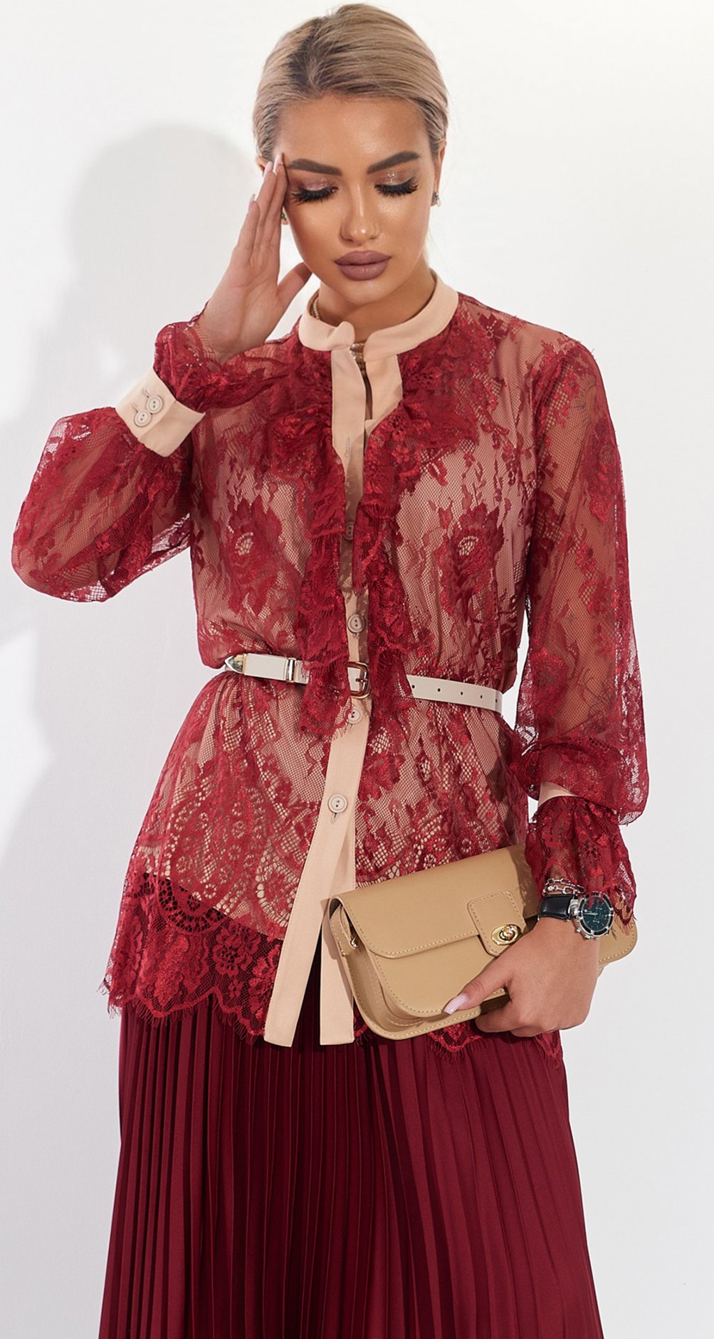 Колір: Бургунді, бежевий