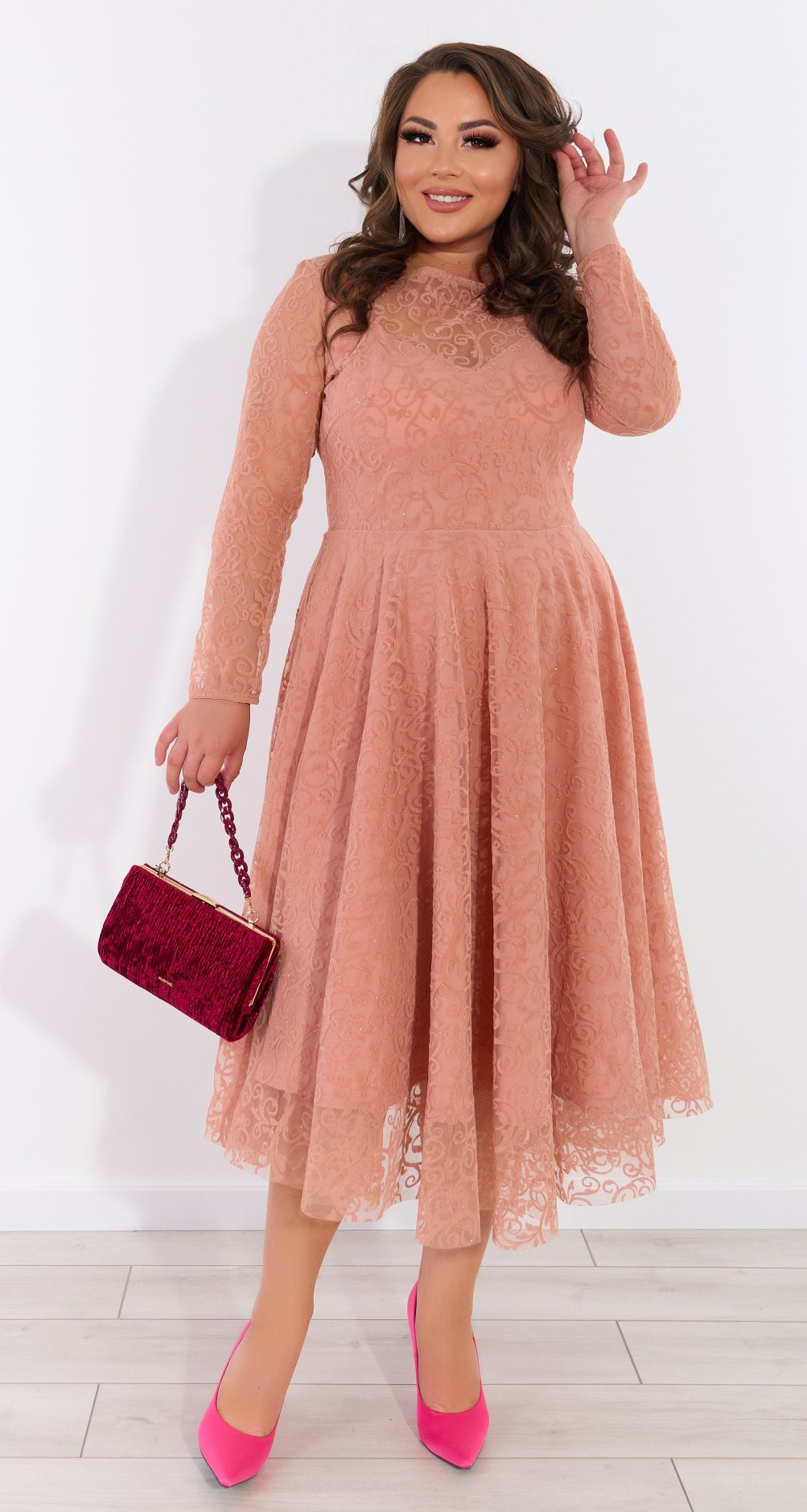 Плаття з ошатної сіточки з оксамитовим мерехтливим візерунком . Повністю на підбивці.