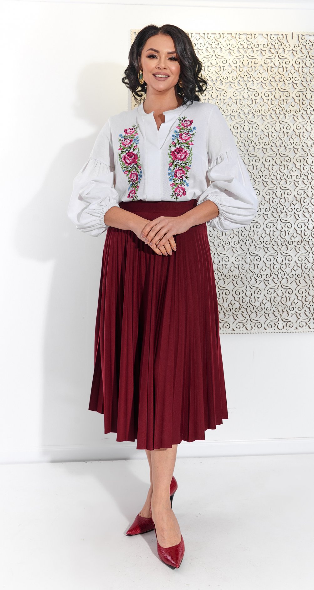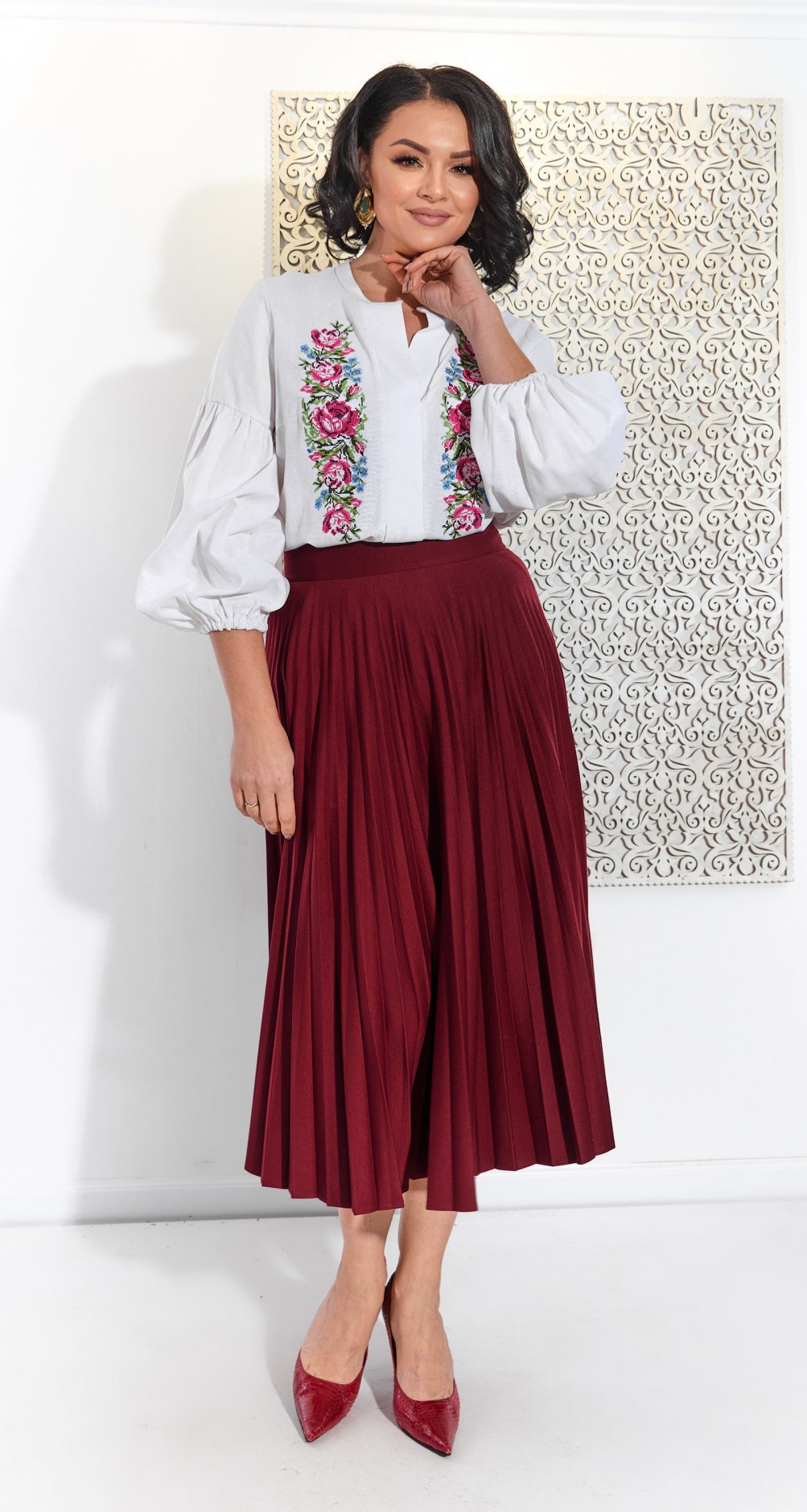 Льняна блуза з вишуканою вишивкою та розкішна спідниця у складку – ідеальний вибір для тих, хто цінує стиль, комфорт та натуральні матеріали. Блуза виготовлена з м'якого льону, подарує відчуття легкості та комфорту у будь-яку пору року. Ніжна вишивка додає унікальності та витонченості в кожен елемент дизайну, підкреслюючи вашу індивідуальність. Елегантний крій та універсальний колір роблять цю блузу ідеальною як для повсякденних образів, так і для особливих випадків. Спідниця із сумішевої тканини з полієстром! Добре тримає складку і мало зминається! Складки не розходяться навіть під час прання. Боїться лише гдажки! Блуза окремо, чудово поєднується з джинсами та спідницями у будь-якому стилі. Насолоджуйтесь комфортом та стильним акцентом у вашому гардеробі з цим унікальним костюмом!