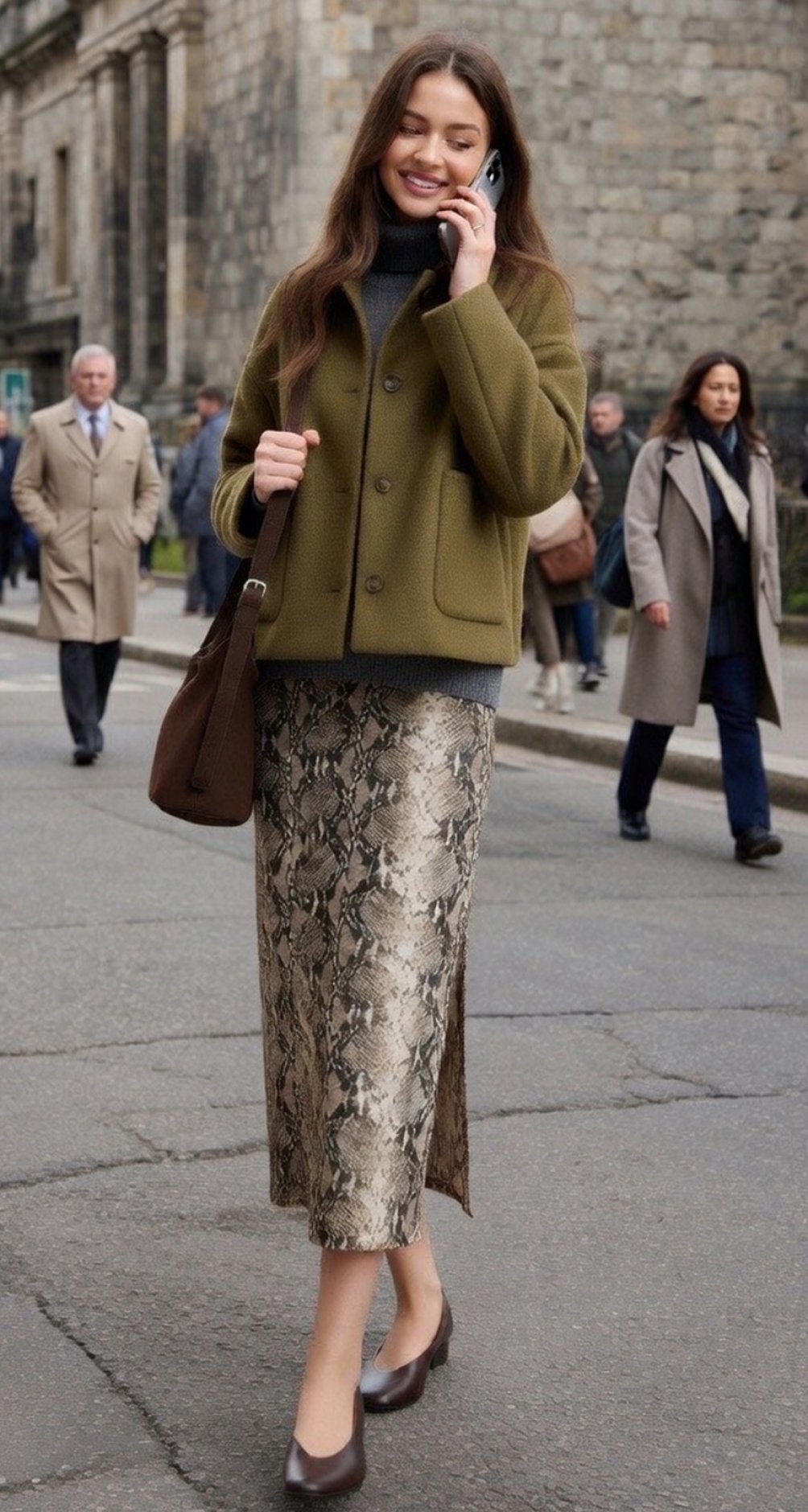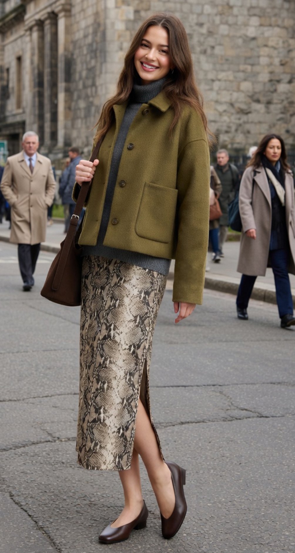 Трендовий оливковий колір: Насичений, але при цьому спокійний відтінок оливи - головний фаворит сезону. Він ідеально гармонує як із денімом, так і з нашими молочними лонгслівами, так і з трендовим принтом пітона.