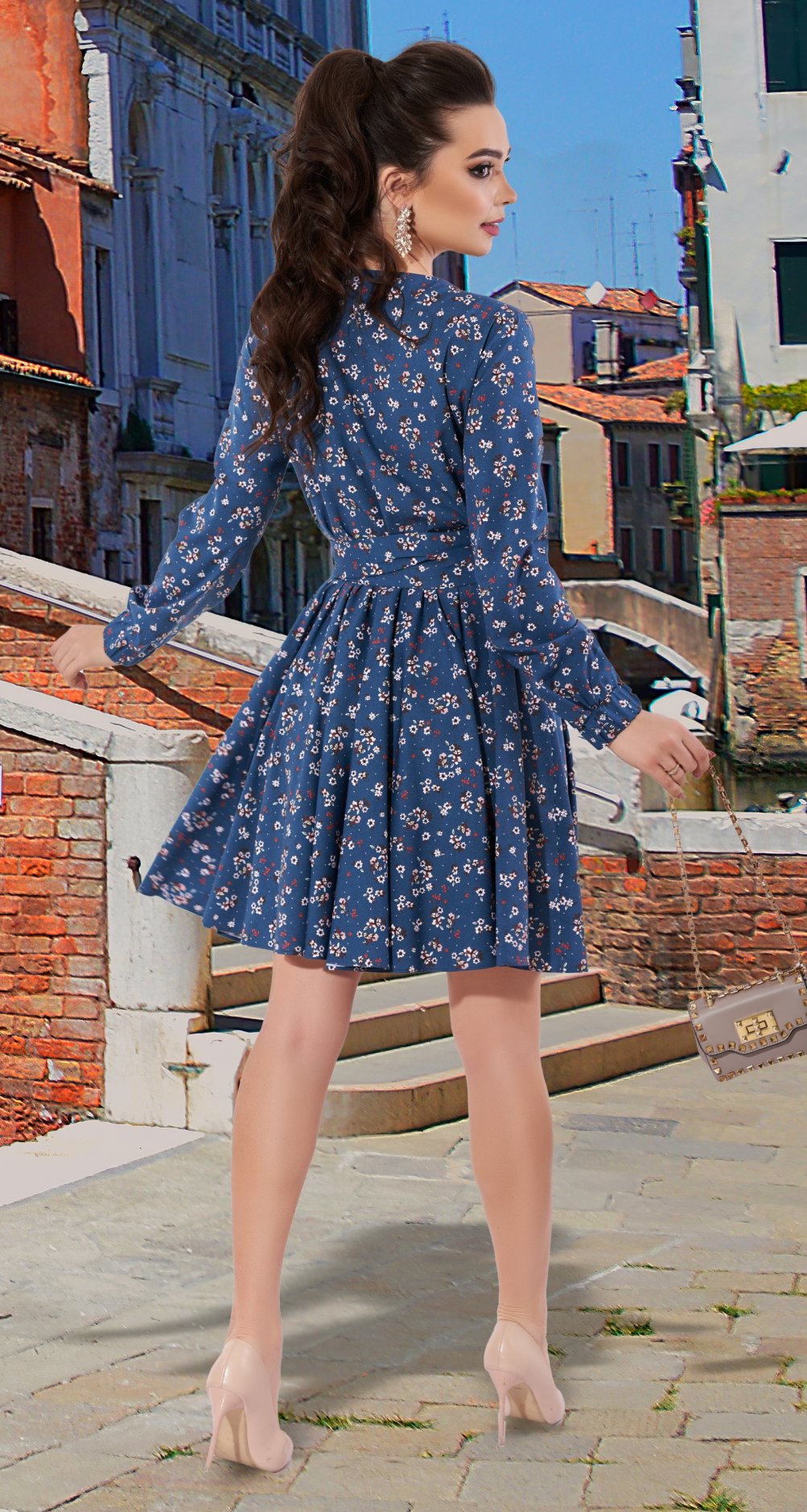 Розкльошена спідниця-сонце, ліф з напуском - це відмінні деталі модної сукні!
