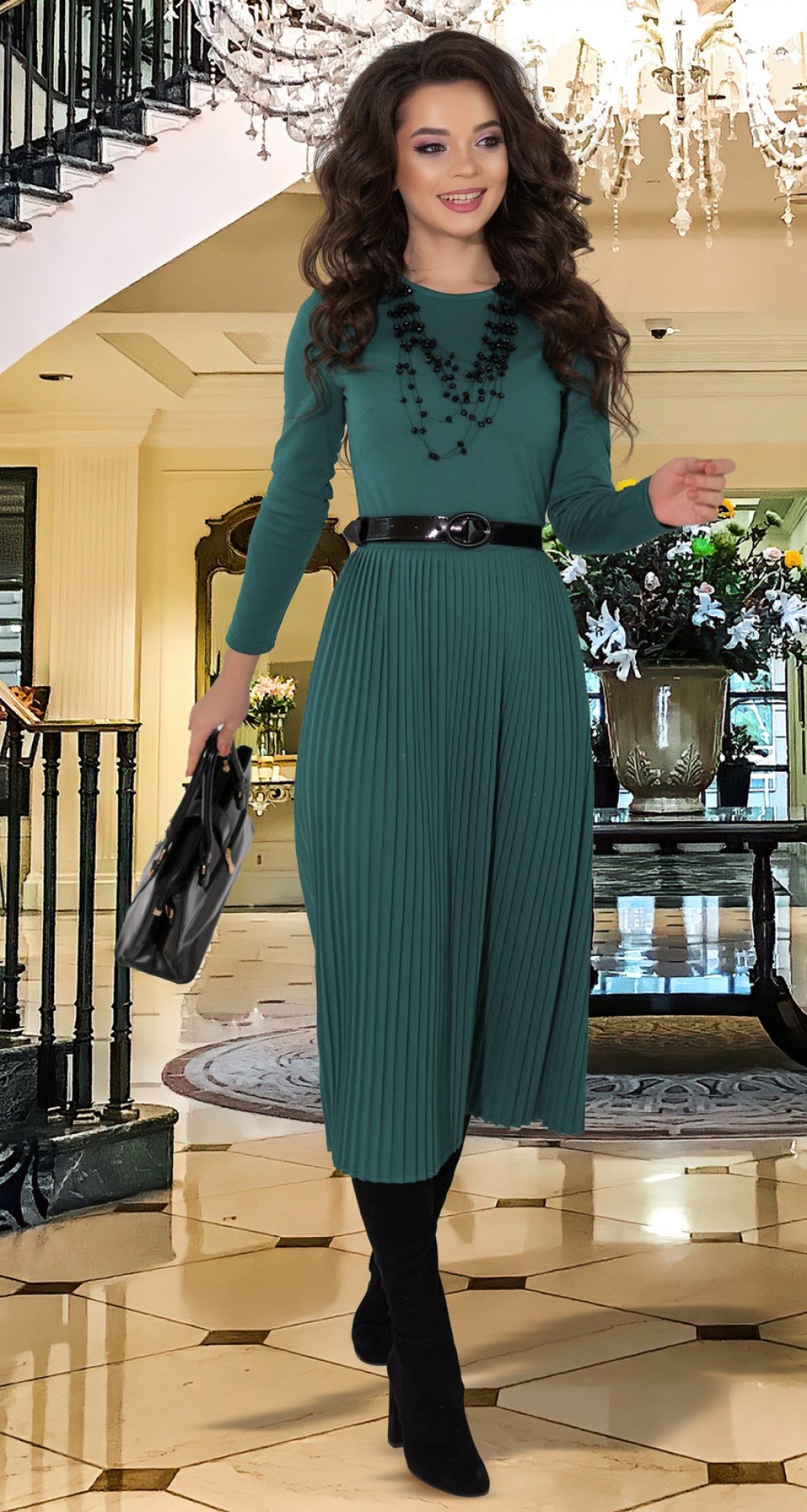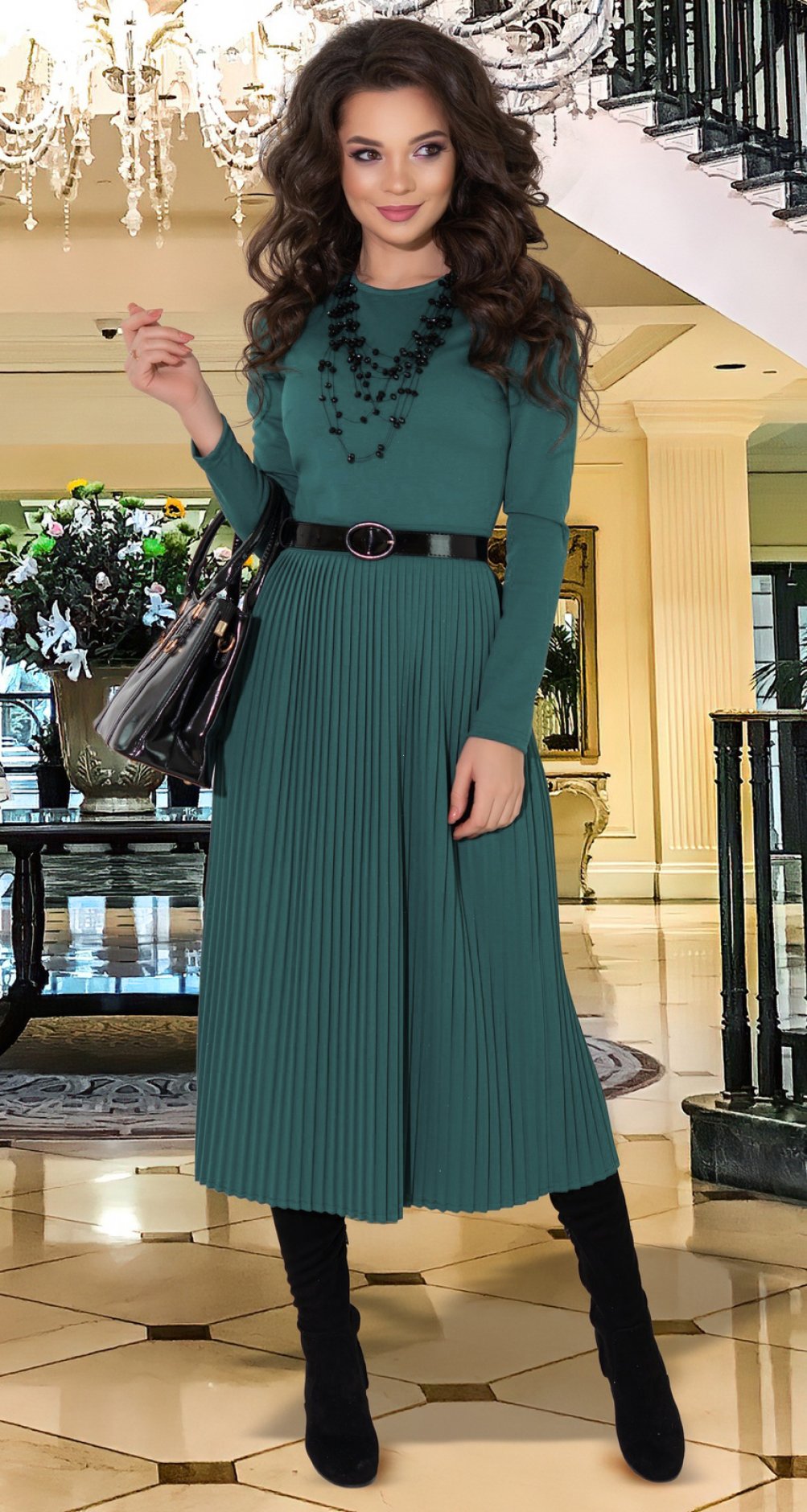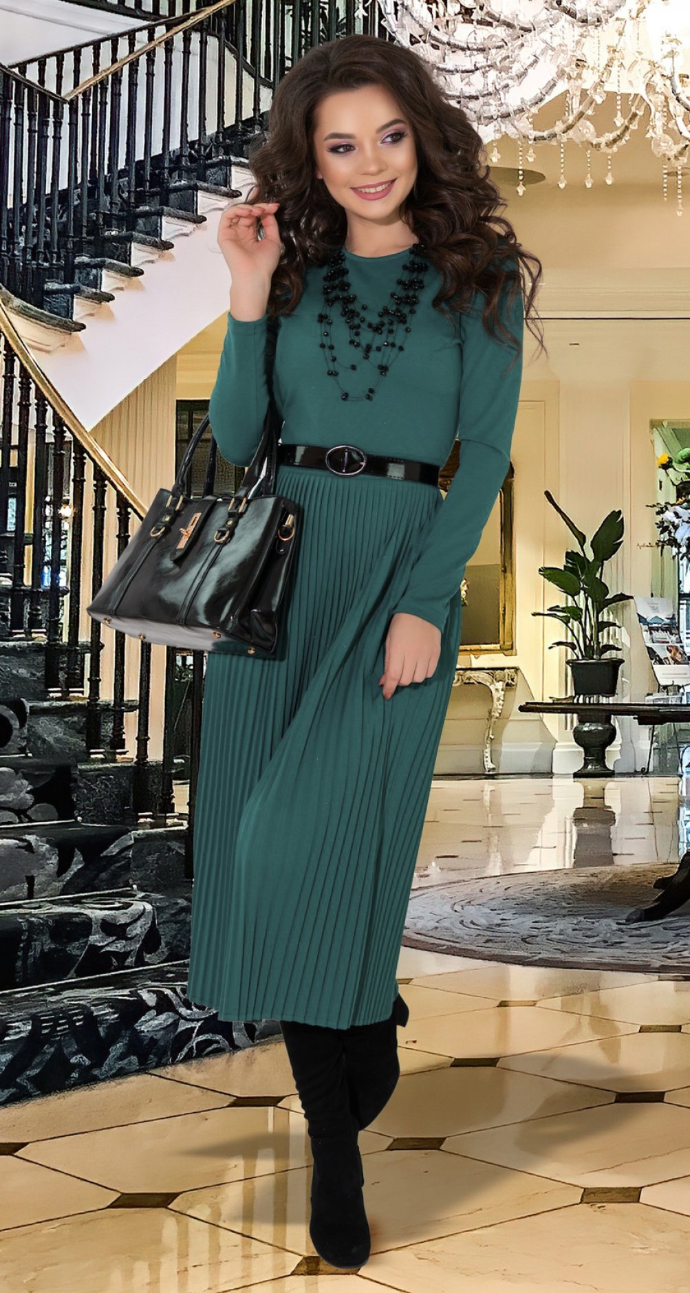 Зшита сукня з м'якої та тепленької тканини. Це трикотажна тканина, щільна та ошатна.