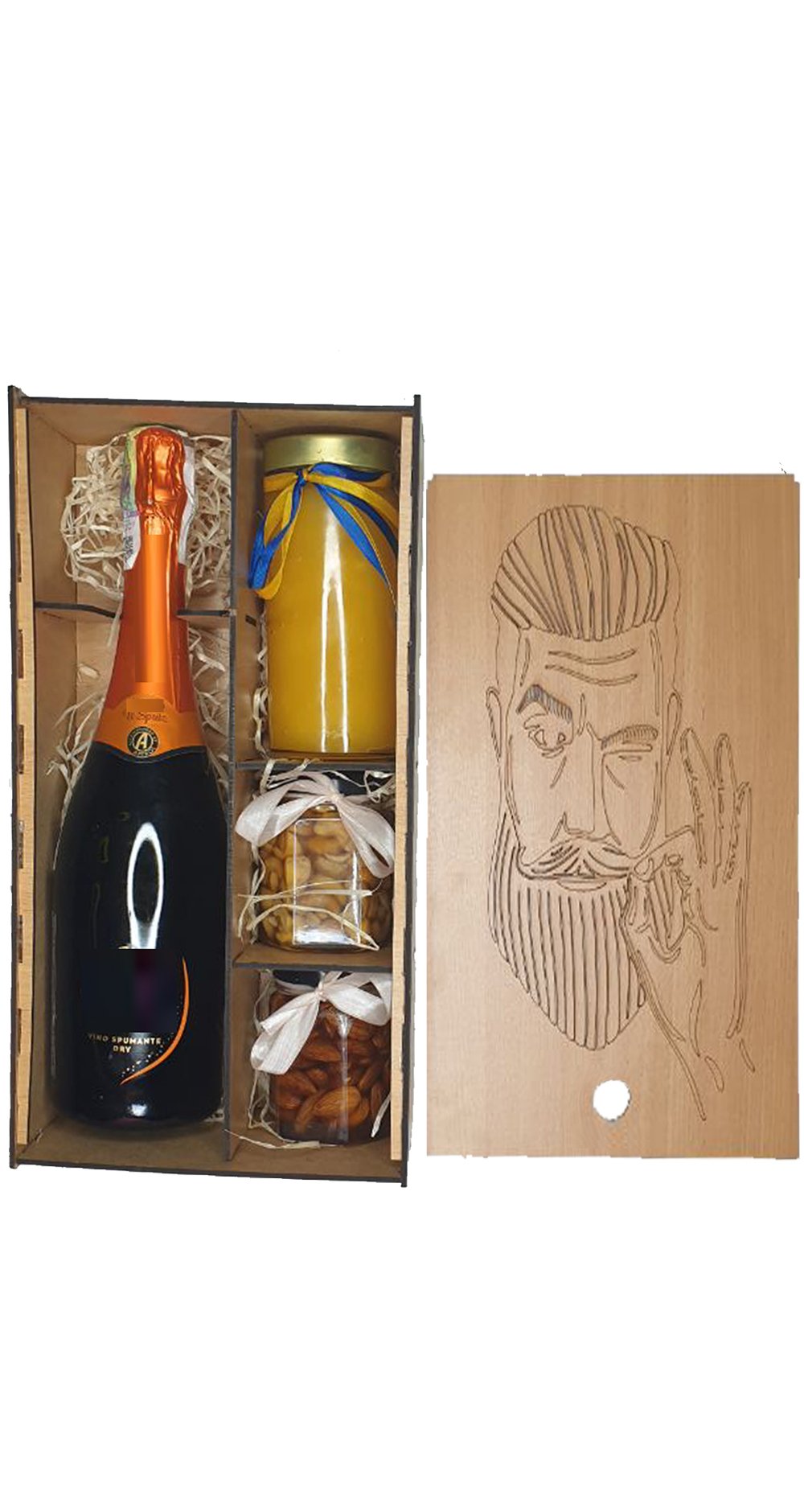 Солодкий подарунковий набір чаю та меду для чоловіків, жінок, мами, тата, батьків, вчителі, начальника, брата, сестри, чоловіка, дружини у вигляді скриньки. Дерев'яне пакування стилізоване під книгу. Відкриваєте і всередині книги-скриньки знаходите три баночки з медом (пляшка в набір не входить). Скринька виконана в авторському дизайні, на дерев'яній обкладинці коричневого кольору вигравіюваний чоловік з бородою, жіноче обличчя, символ різдва сніжинки, з днем ​​народження, свічки, торт. . Також така річ буде чудовим декором на будь-якій кухні. Колір мішечків в асортименті може відрізнятися від фото.