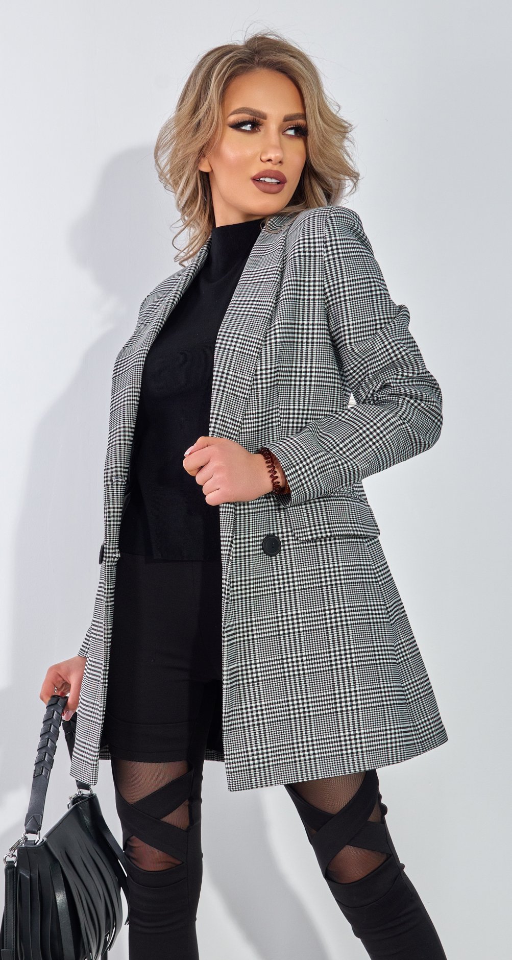 Зшитий з жакардової тканинив дрібну клітку!