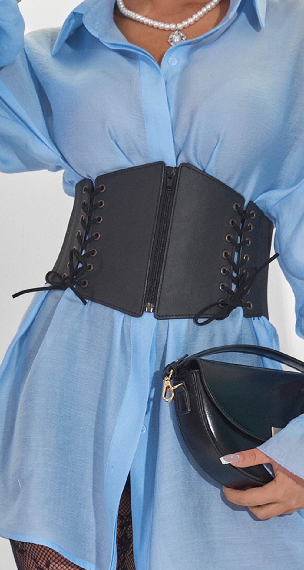 Носиш об'ємну блузу або оверсайз піджак? Додайте корсет зверху, щоб додати образу структури.