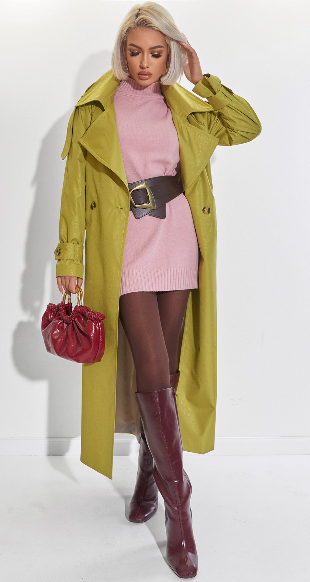 З тренчем з фактурної плащової тканини: щоб створити графічний силует «пісочний годинник».