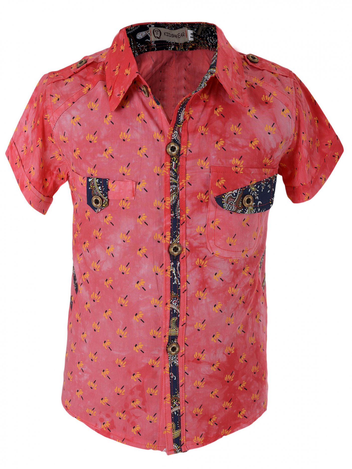 Дитяча сорочка з коротким рукавом на ґудзиках. Сорочка з орнаментом та рукав з підворотом.