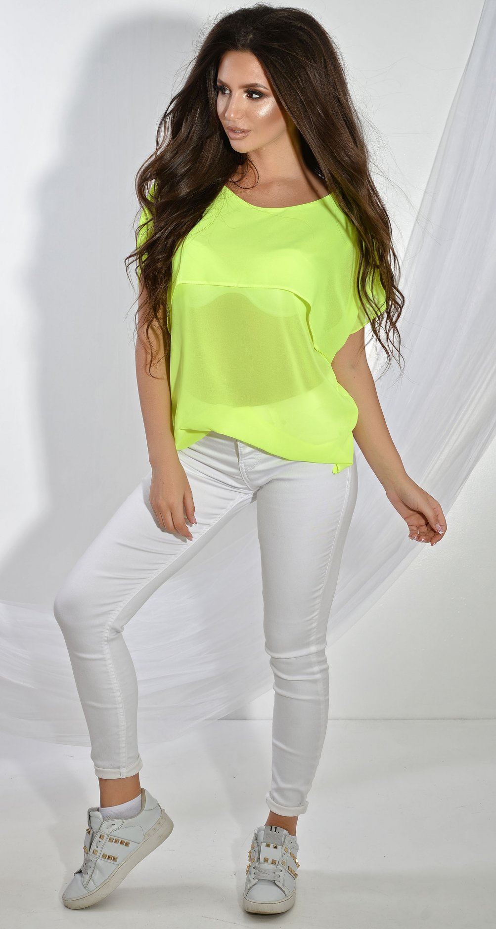 Блуза вільного крою з оборкою та подовжена ззаду.