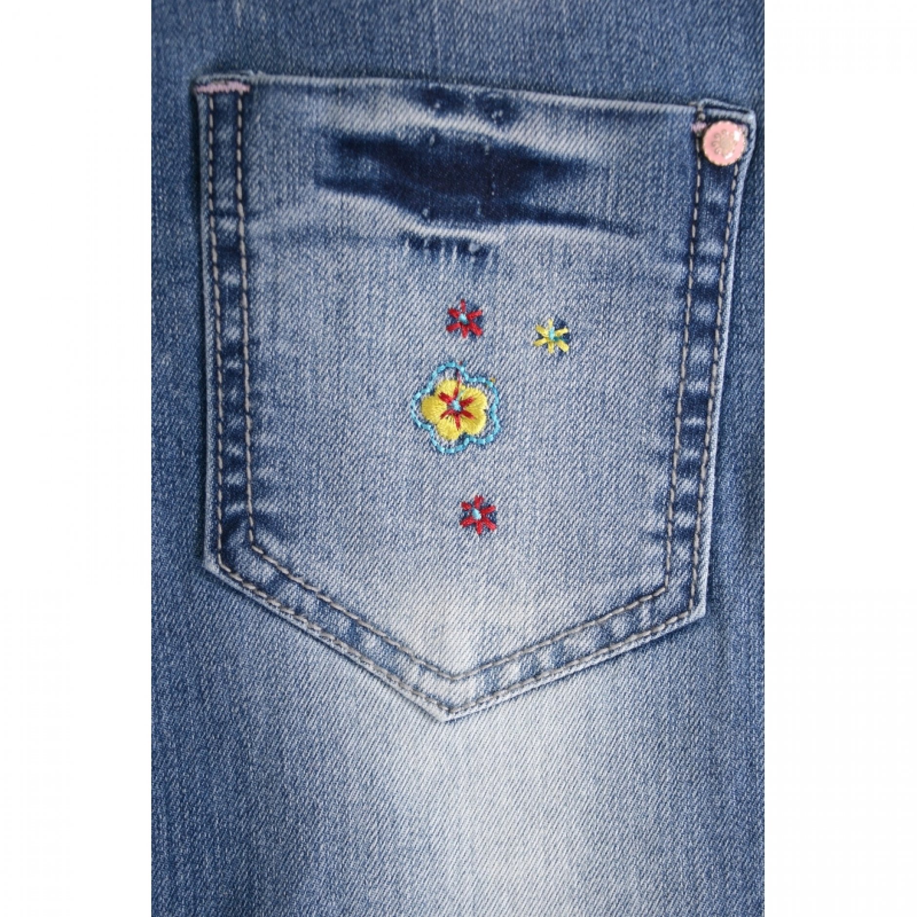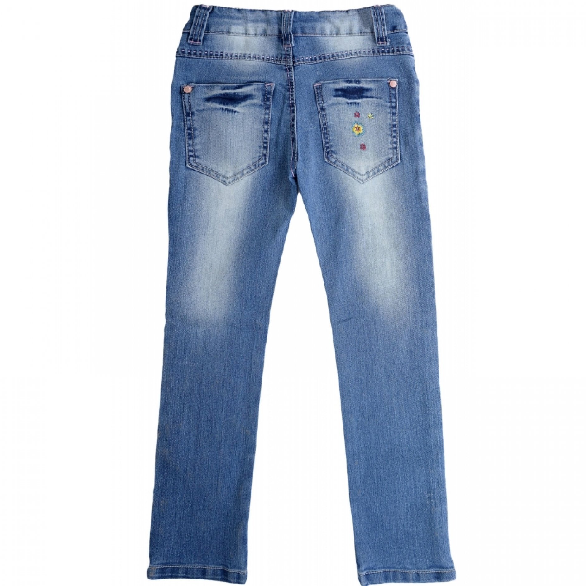 Блакитні джинси для дівчинки з потертостями та вишивкою. Чудовий крій та посадка.