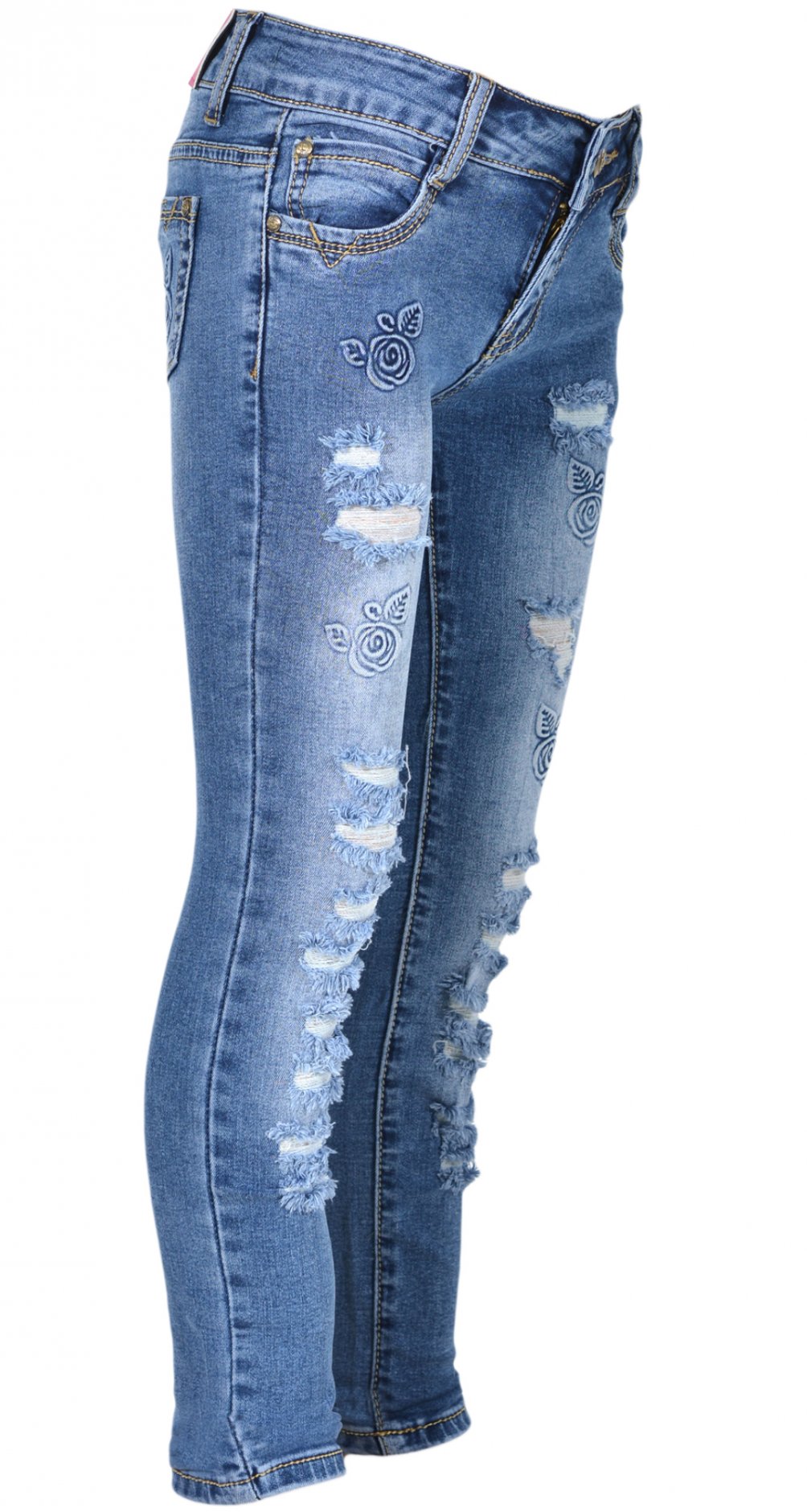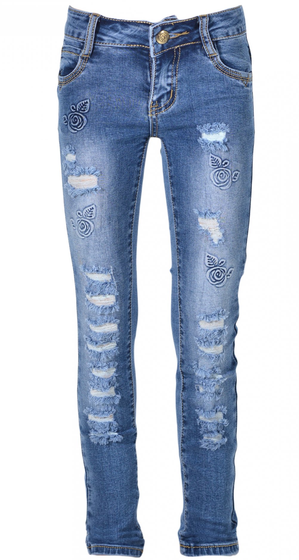 Модні джинси для дівчинки з потертостями і надрізами. Удачный крой и посадка.