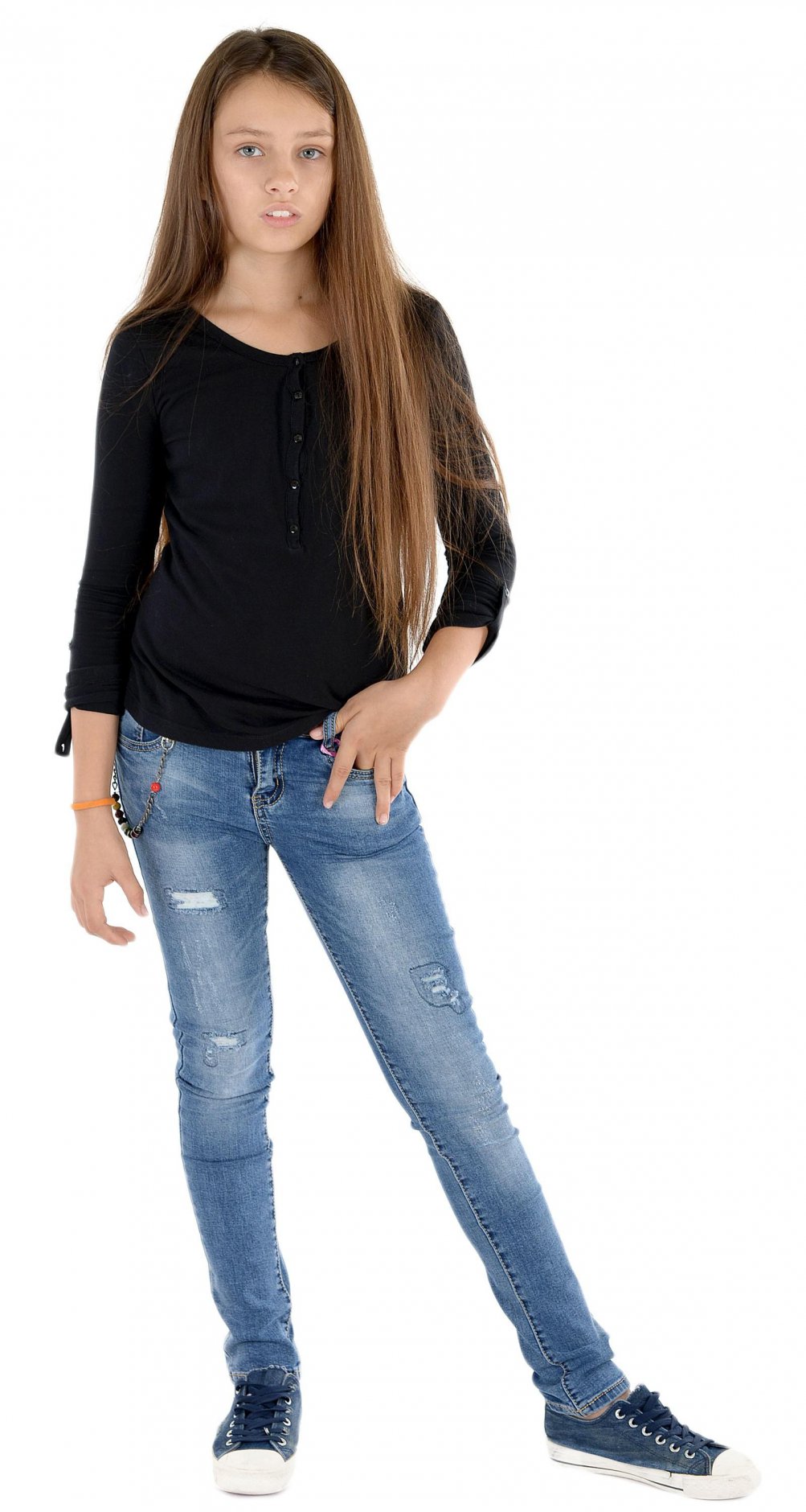 Модні джинси для дівчинки з потертостями та надрізами. Вдалий крій та посадка.