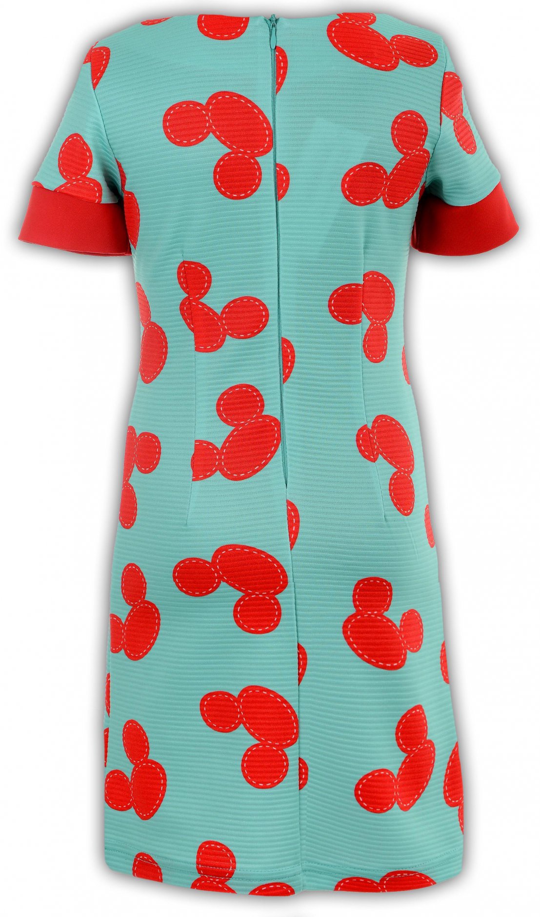 Оригінальна сукня для дівчинки з яскравим червоним орнаментом, вертикальною смугою та бантом.