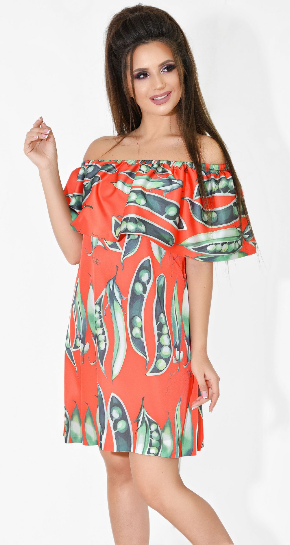 Літнє плаття з відкритими плечима і оборкою біля воріт.