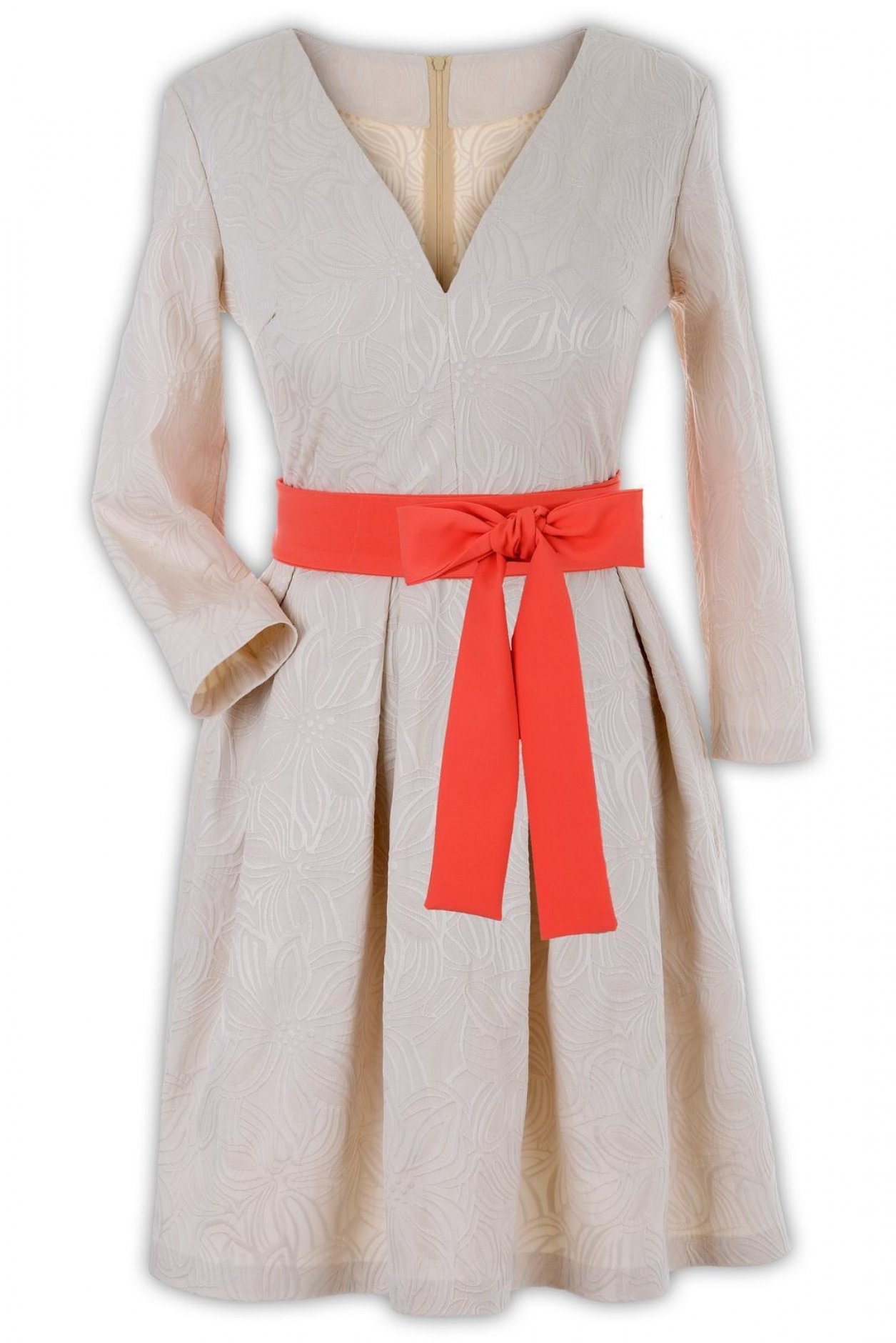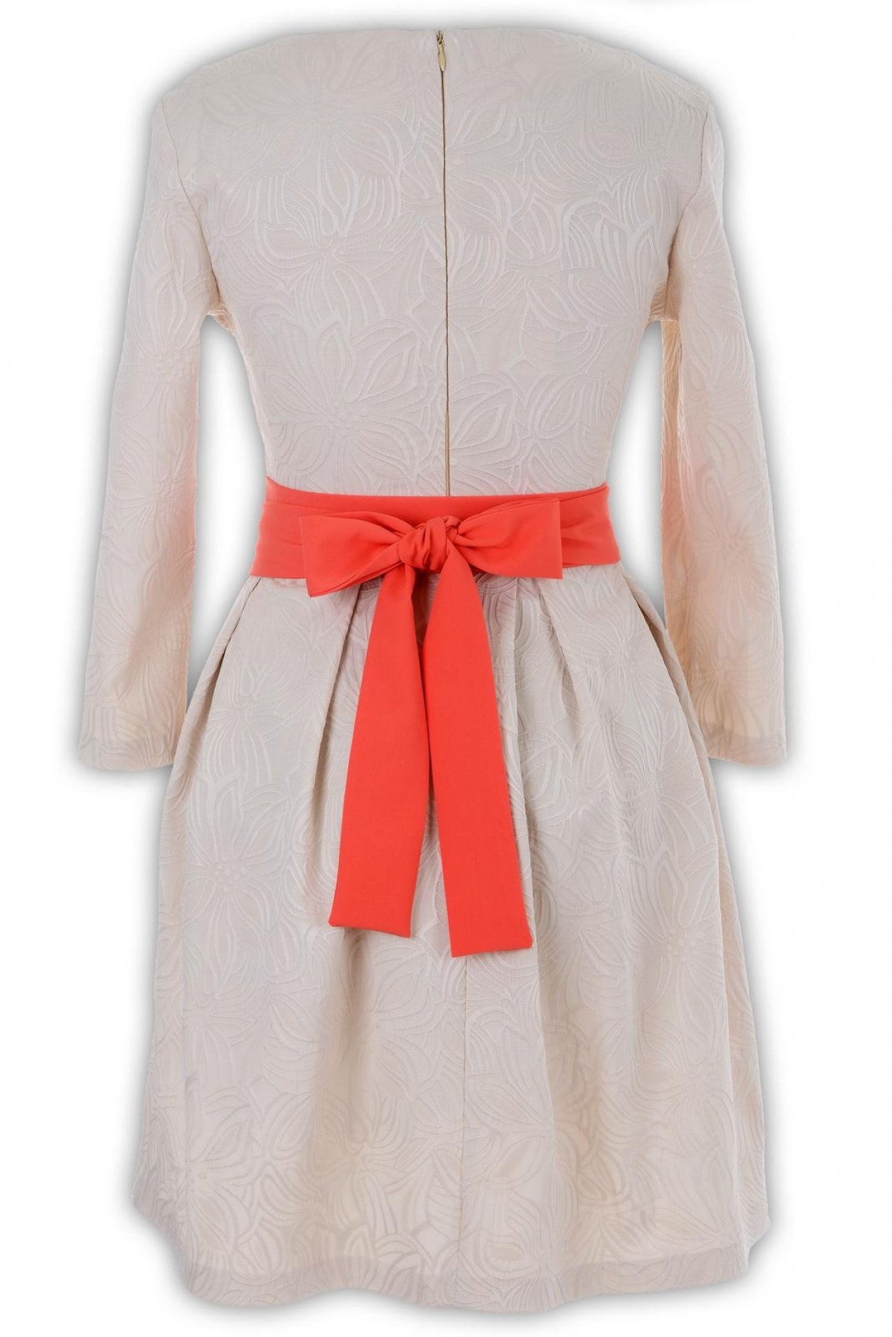 Сукня з жаккардової матової тканини та пояс-бант контрастного кольору.