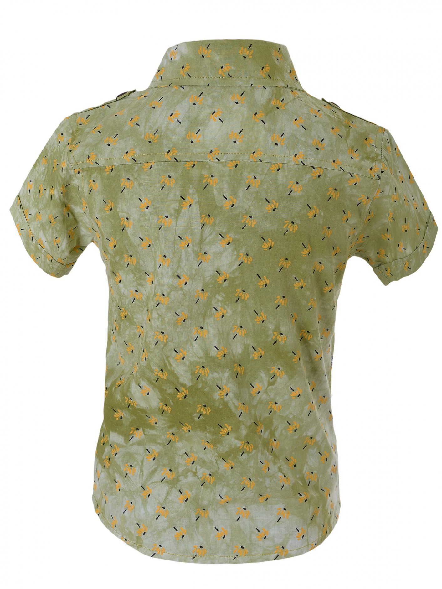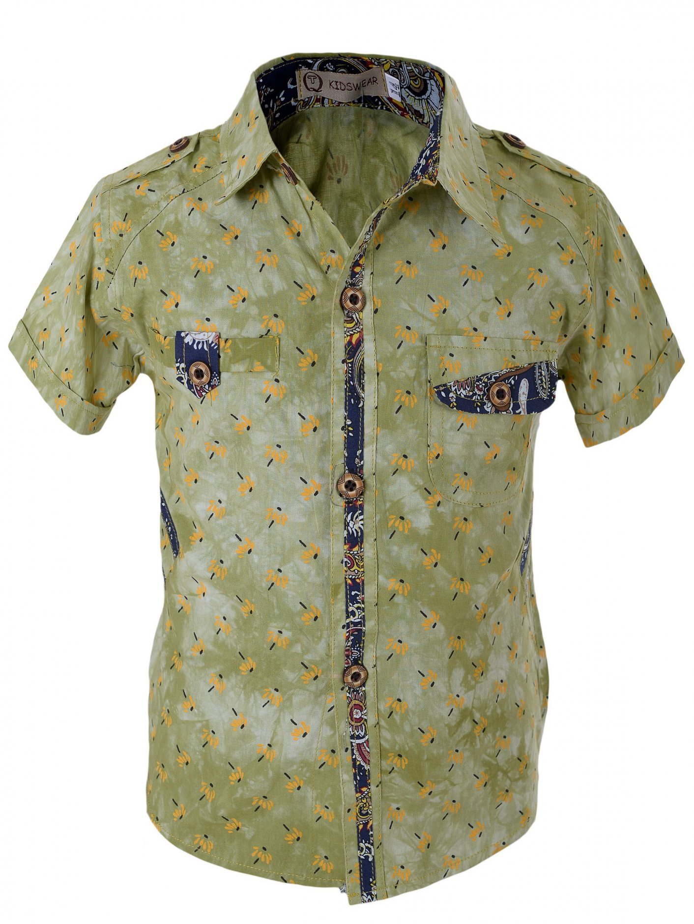 Дитяча сорочка з коротким рукавом на ґудзиках. Сорочка з орнаментом та рукав з підворотом.