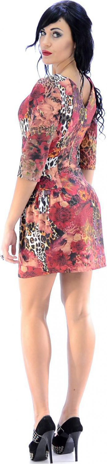 Сукня, що поєднує квітковий і леопардовий принти з оригінальним кроєм спідниці.
