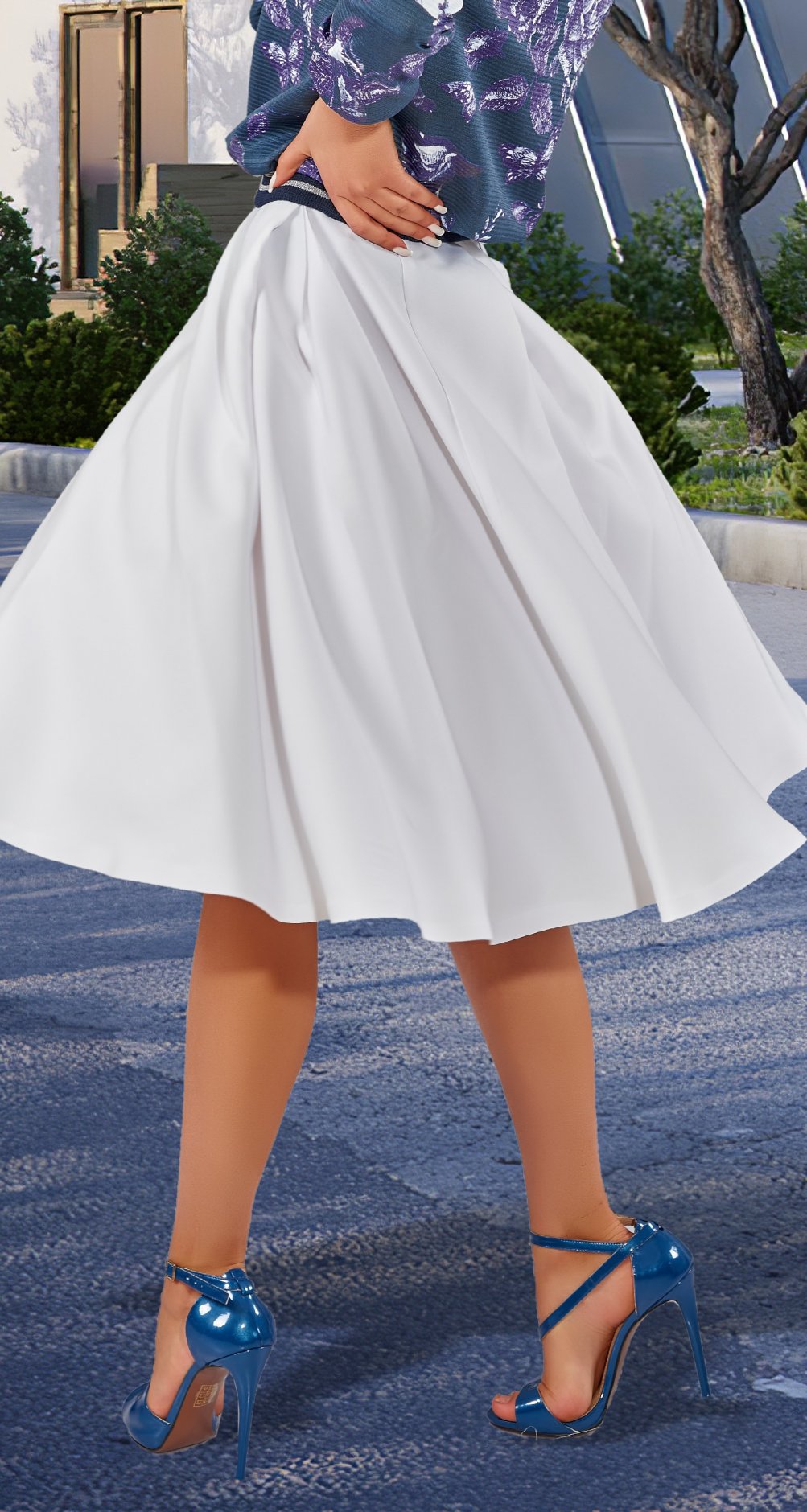 Стильна спідниця, що розкльошує, із спідничної тканини, зі складками.