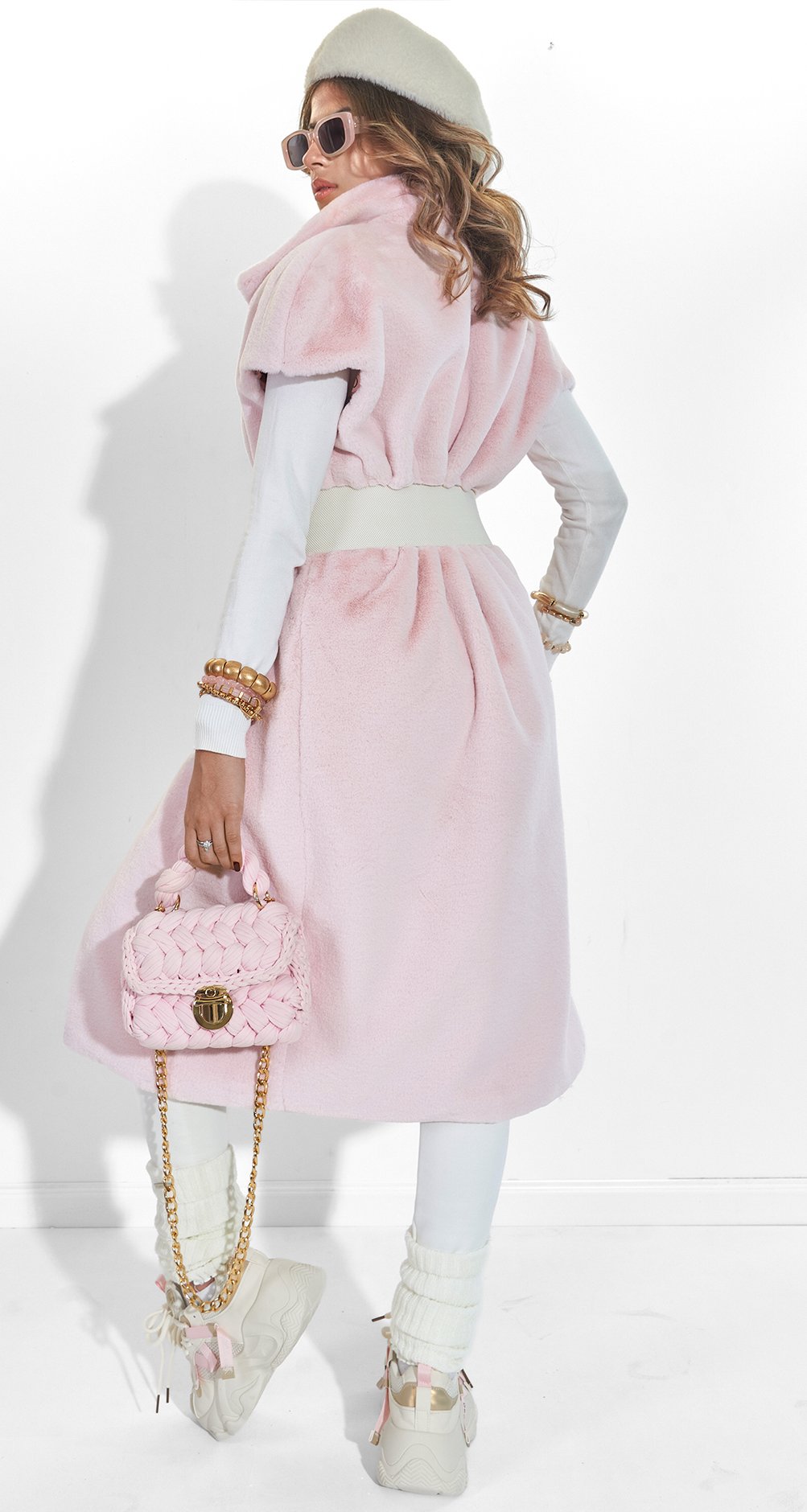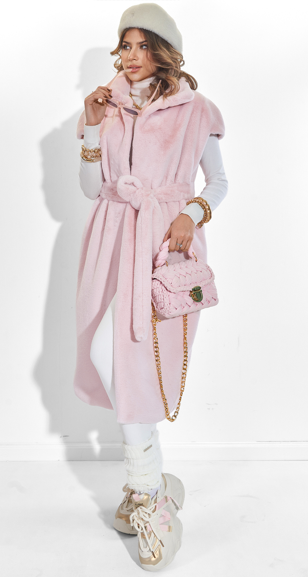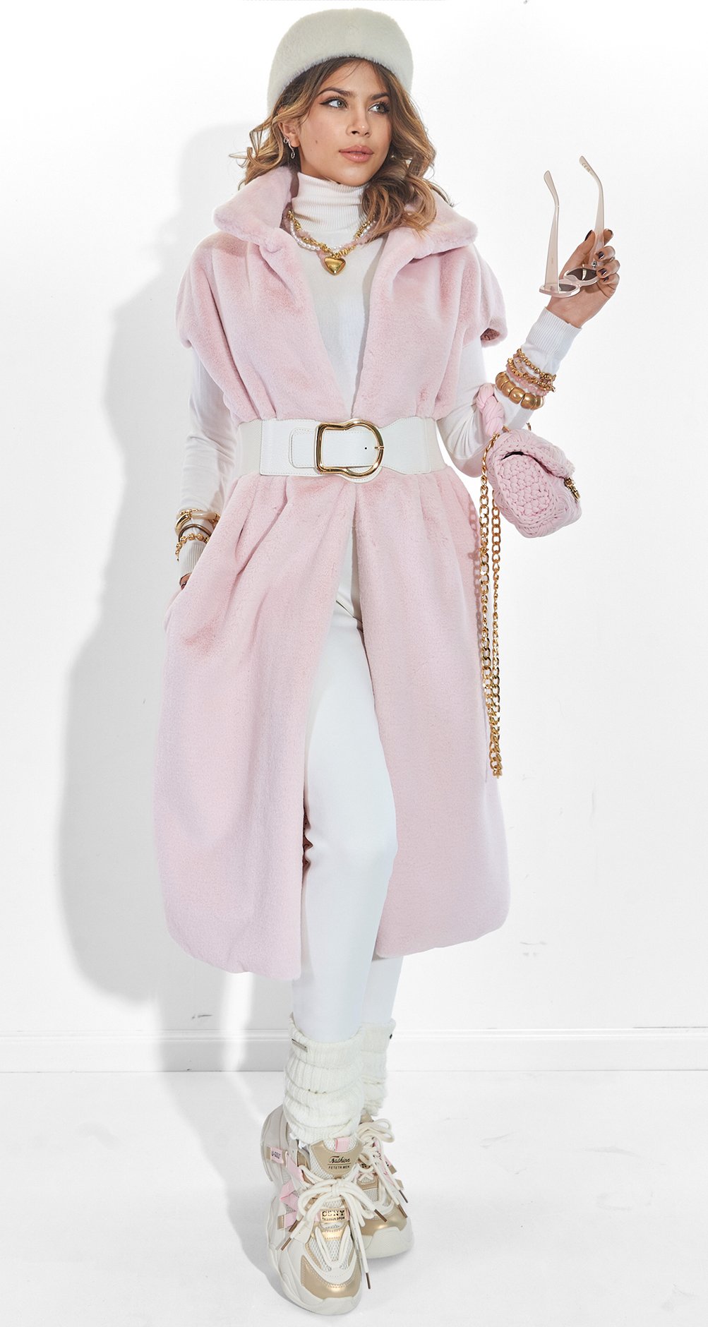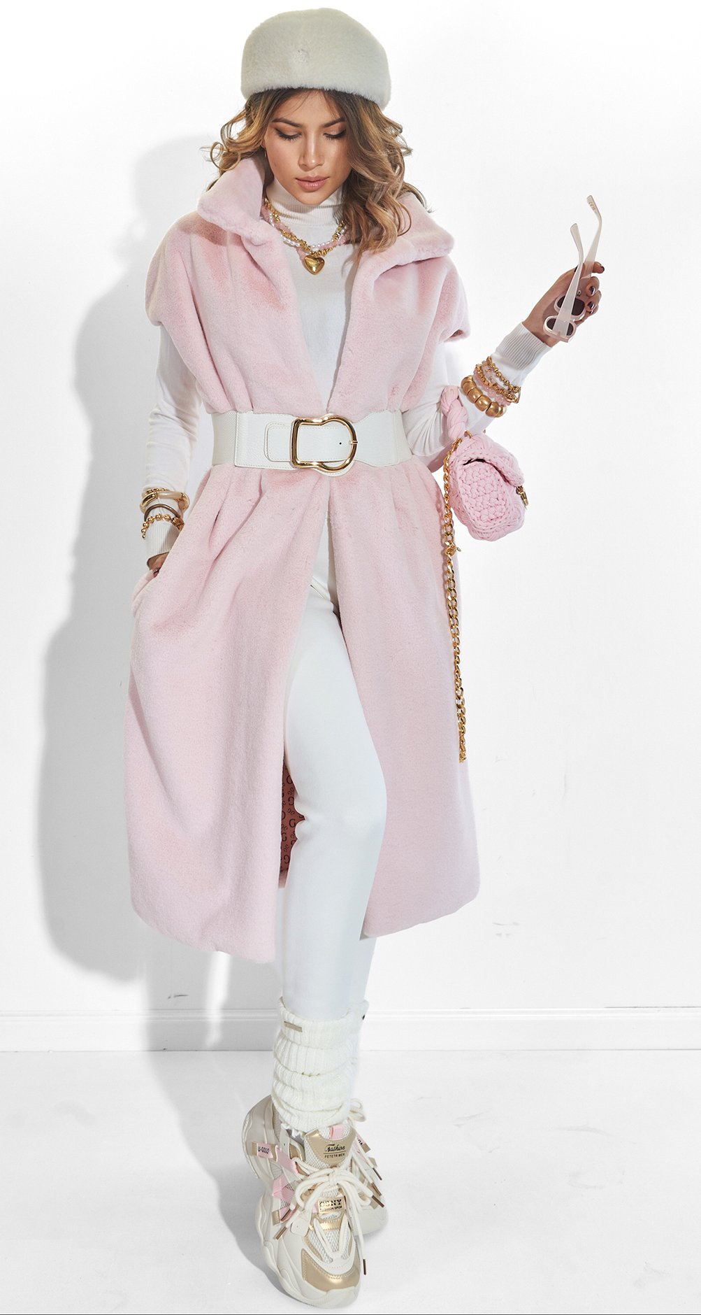 Силует: У комплекті йде пояс з такого ж ніжного хутра, який підкреслює талію, перетворюючи об'ємну річ на жіночне вбрання.