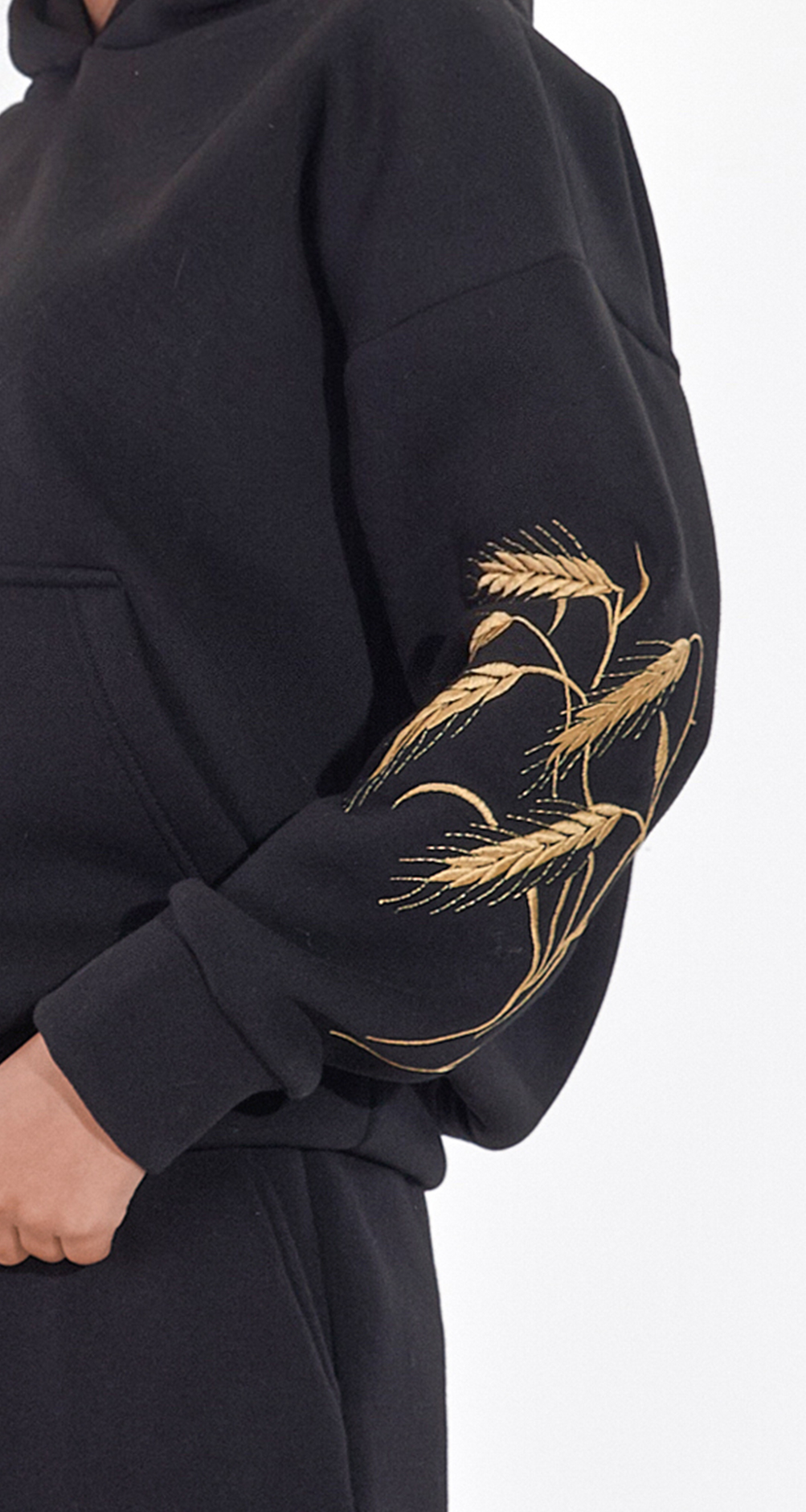 ???? Акцент "Несокрушимость": На рукавах — изящная вышивка в форме пучка золотых колосьев. Этот элемент придает не только красивый этнический акцент, но и национальный символ. Стильно, сильно, символично!
