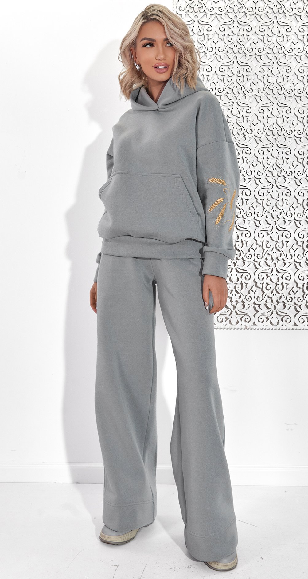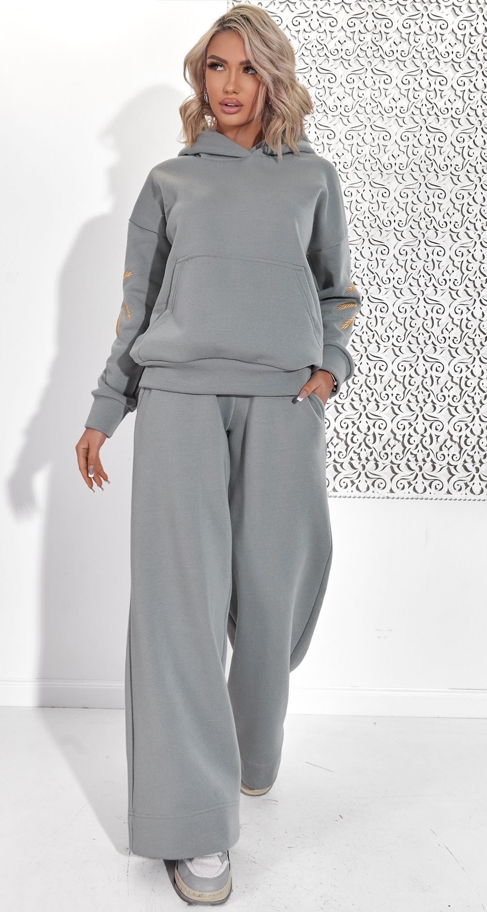 Комфорт & Крой: Худи оверсайз, красивый объемный идеально ложущийся капюшон и удобный пояс брюк на мягкой резинке – все для твоего безупречного комфорта.