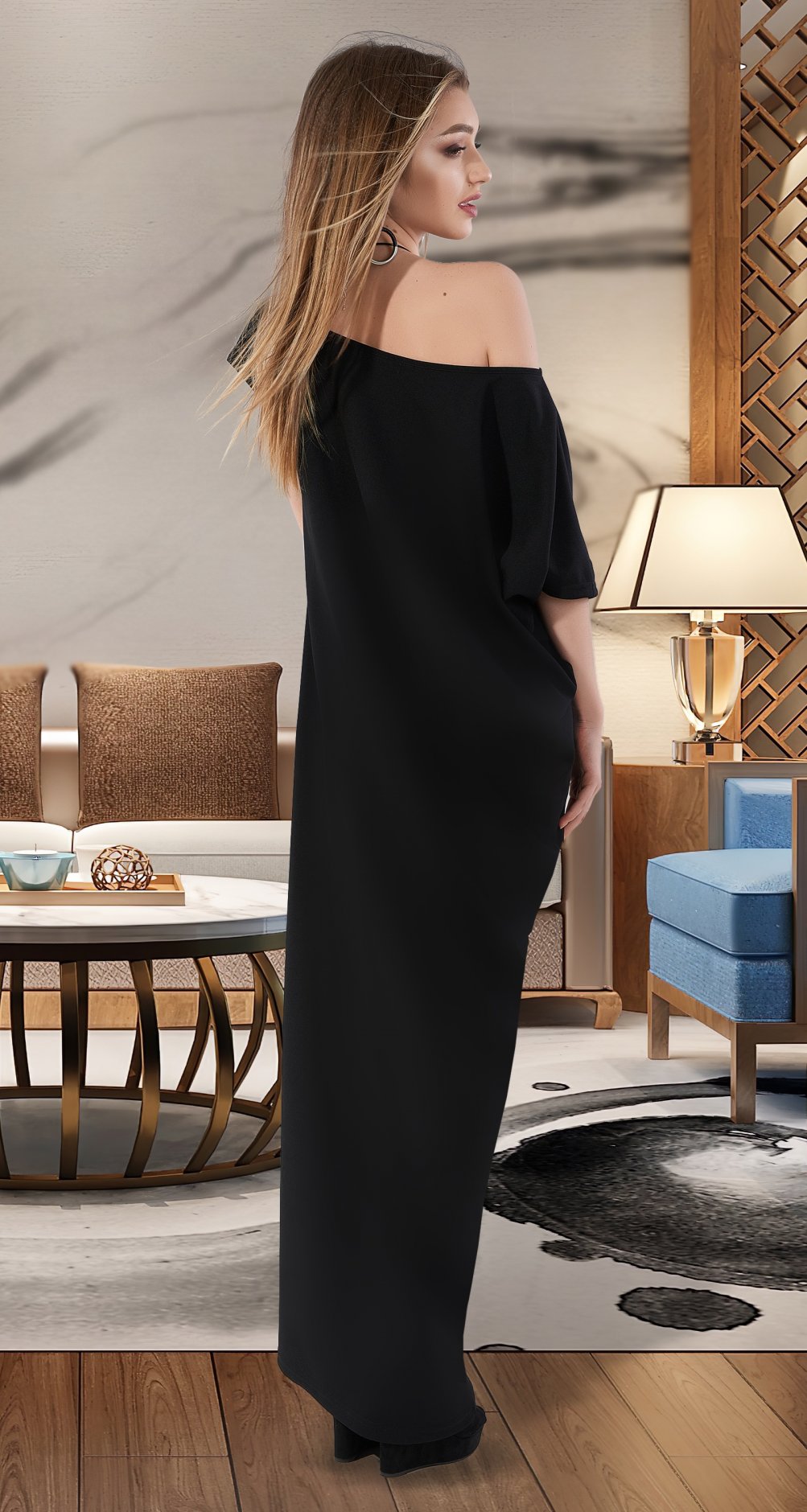 Асимметричное трикотажное платье MAXI .