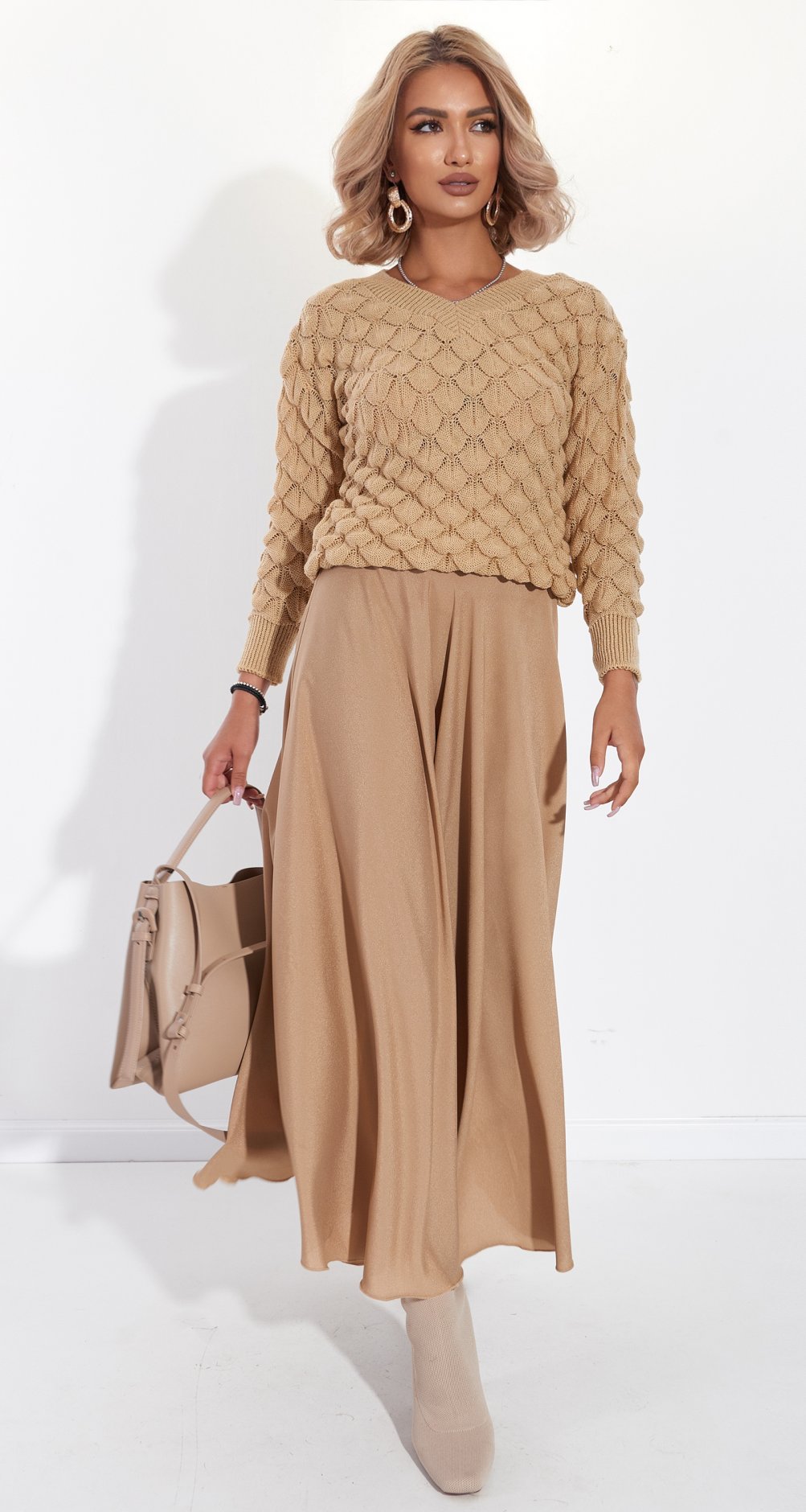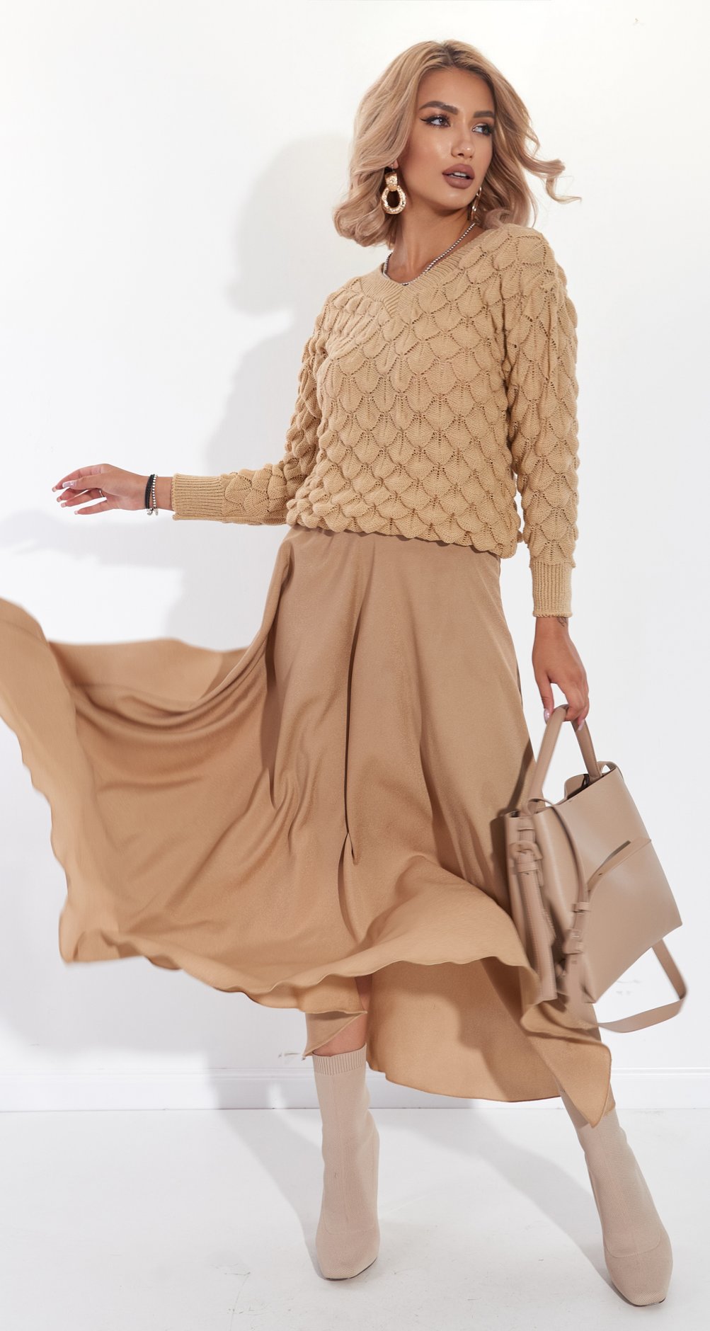 Но компания просит Вас учитывать, что трикотажное платье всегда будет на 10% меньше чем платье из текстиля, по своим обмерным данным! В этом случае оно выглядит более эстетично и женственно.
