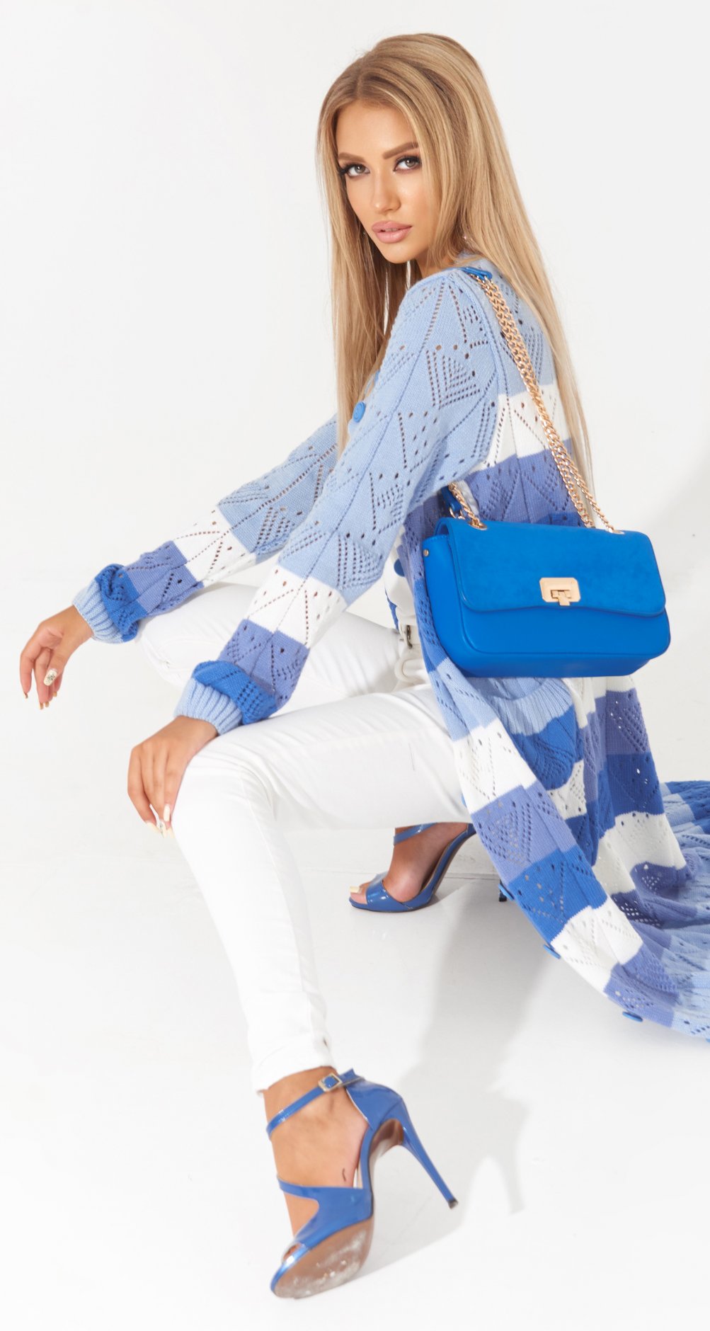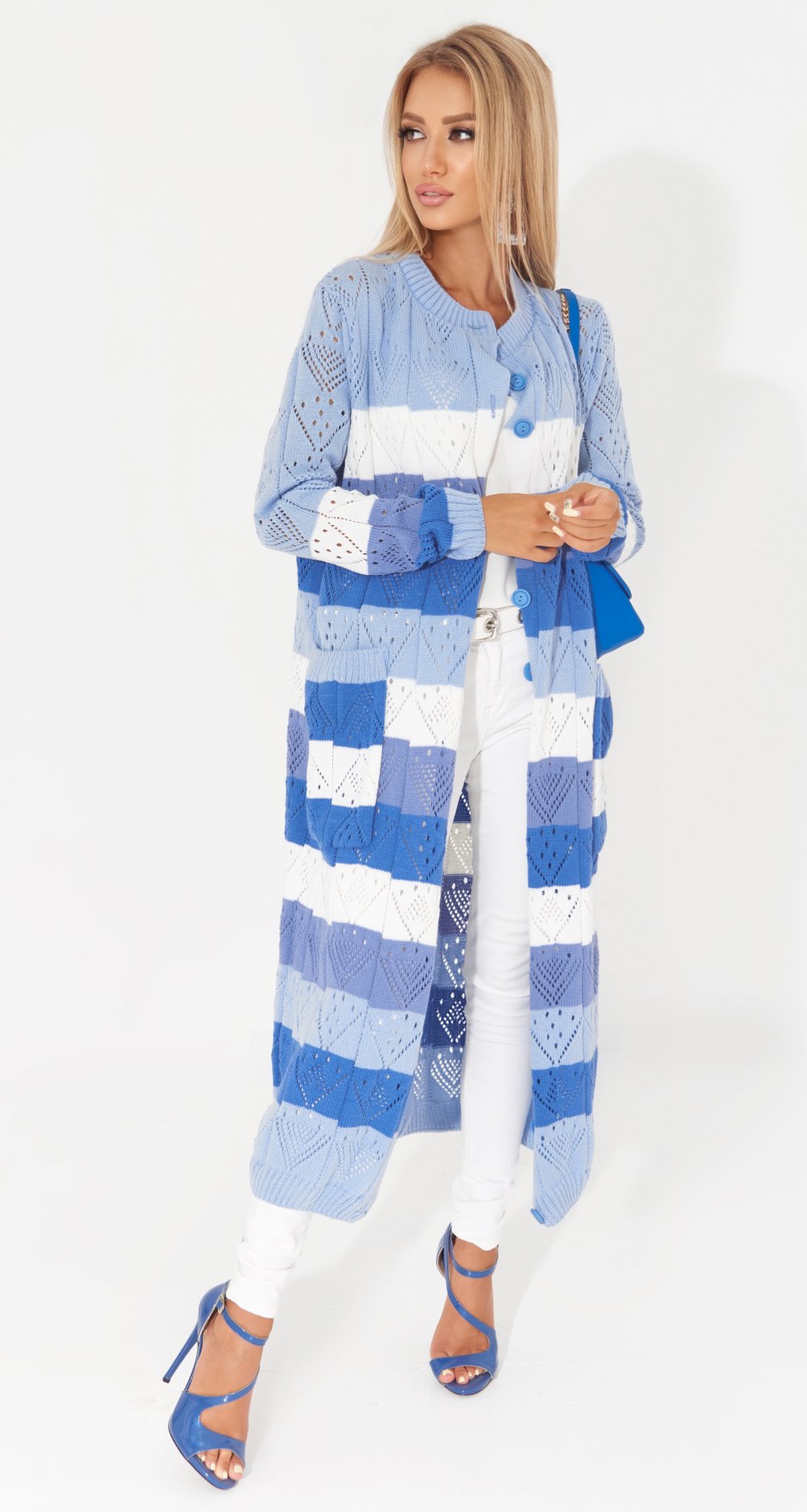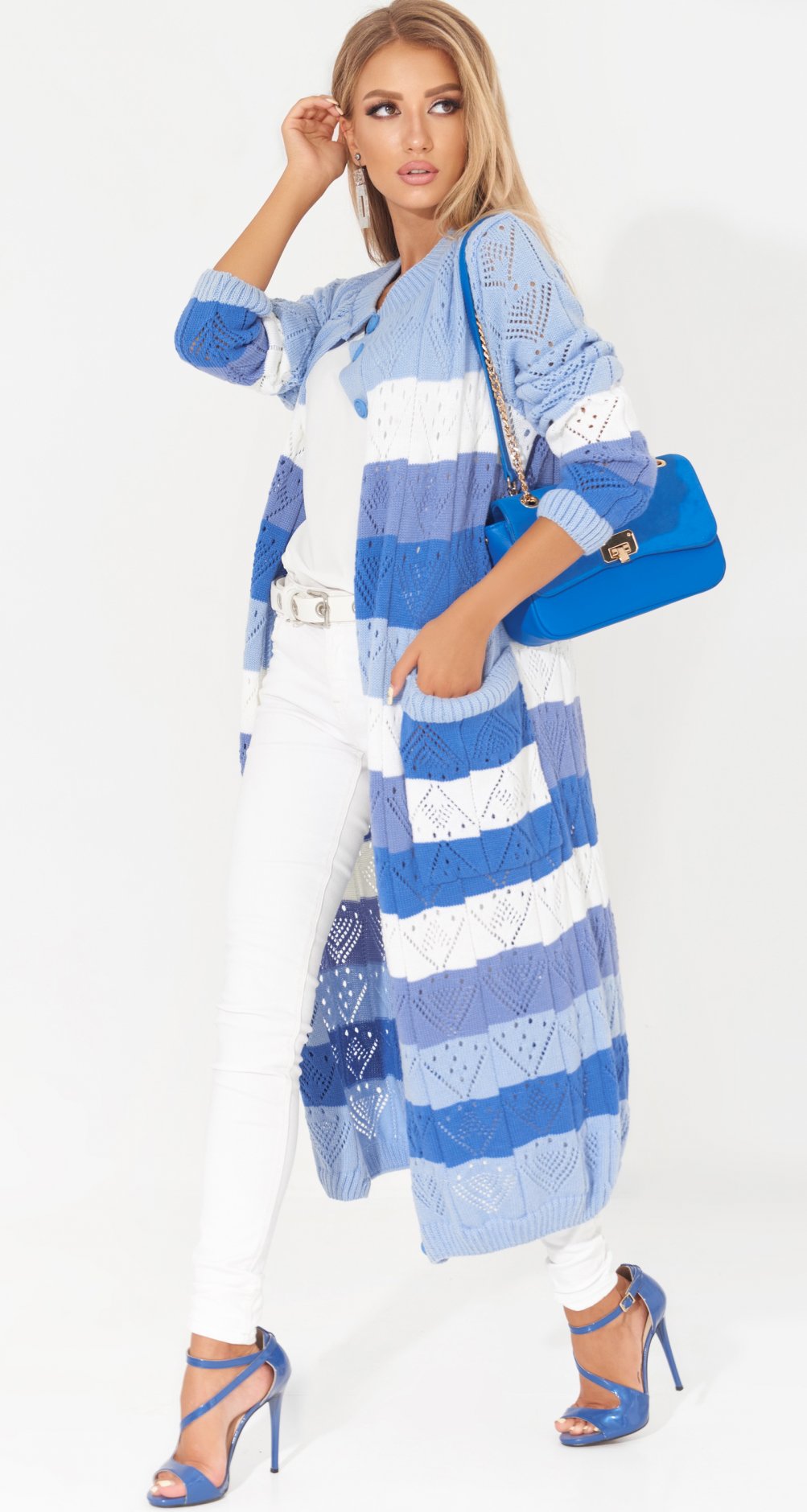 Каталог - Свитера - Ажурный кардиган с карманами в полоску