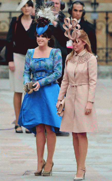 Сестра Беатрис, Принцесса Евгения, была одета в Вивьен Вествуд, со шляпой от Трейси.