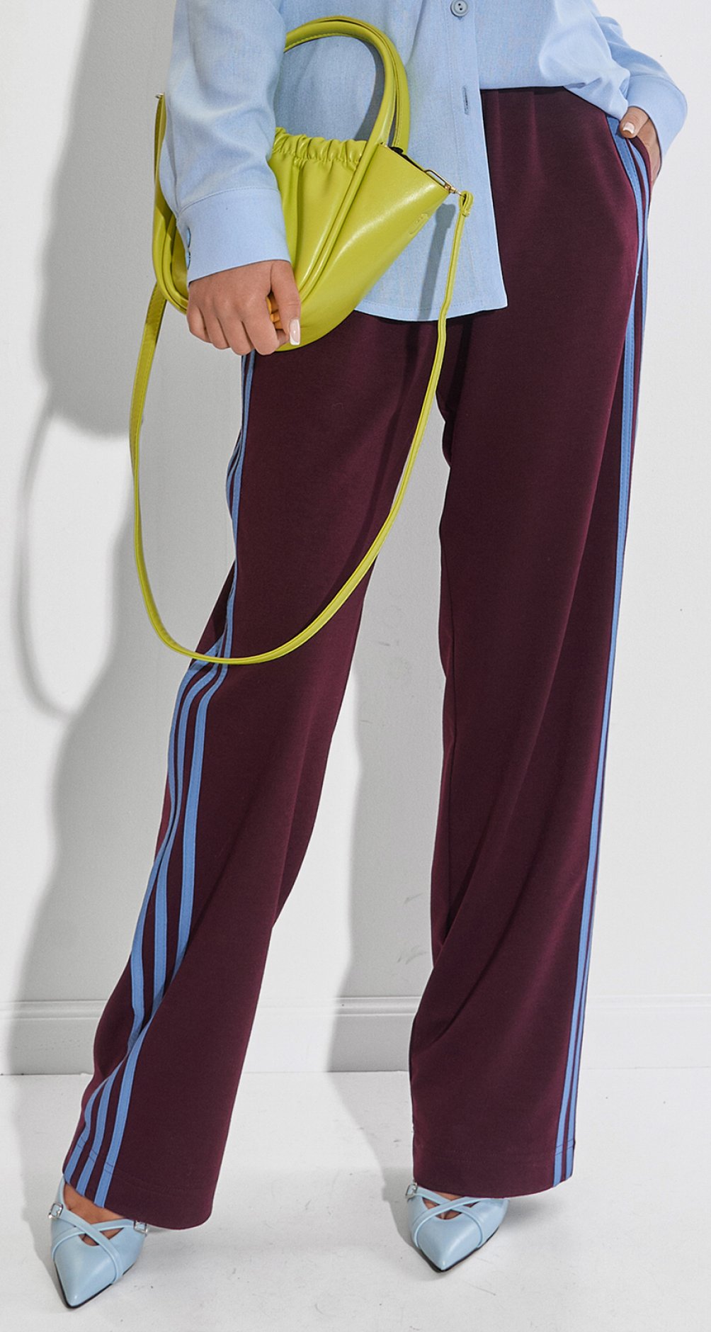 В современной моде такие штаны часто называют не просто «спортивками», а трикотажными брюками-палаццо или джогерами с лампасами.