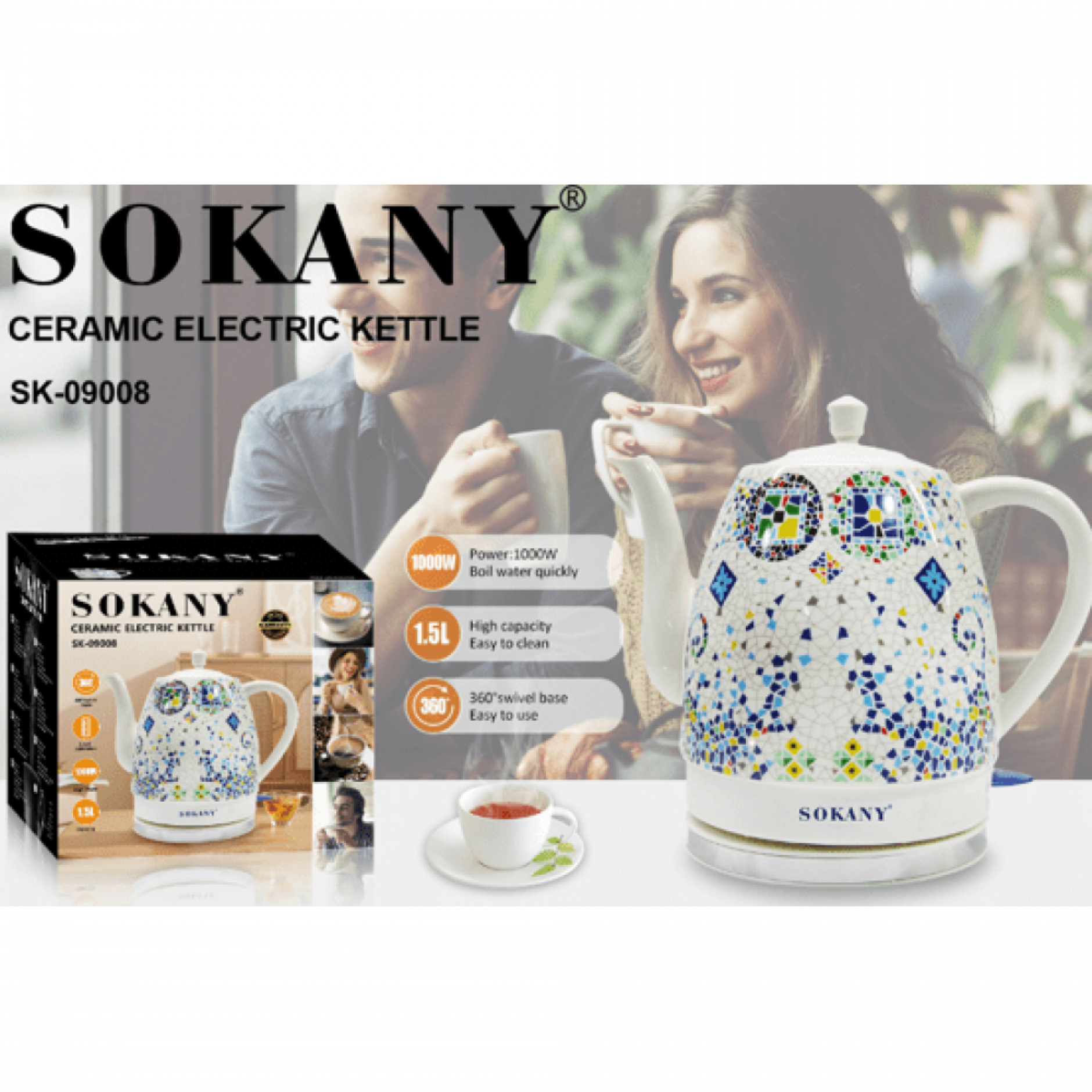 чайник Sokany SK-09008 сочетает стиль, удобство и безопасность. Объем 1,5 литра
