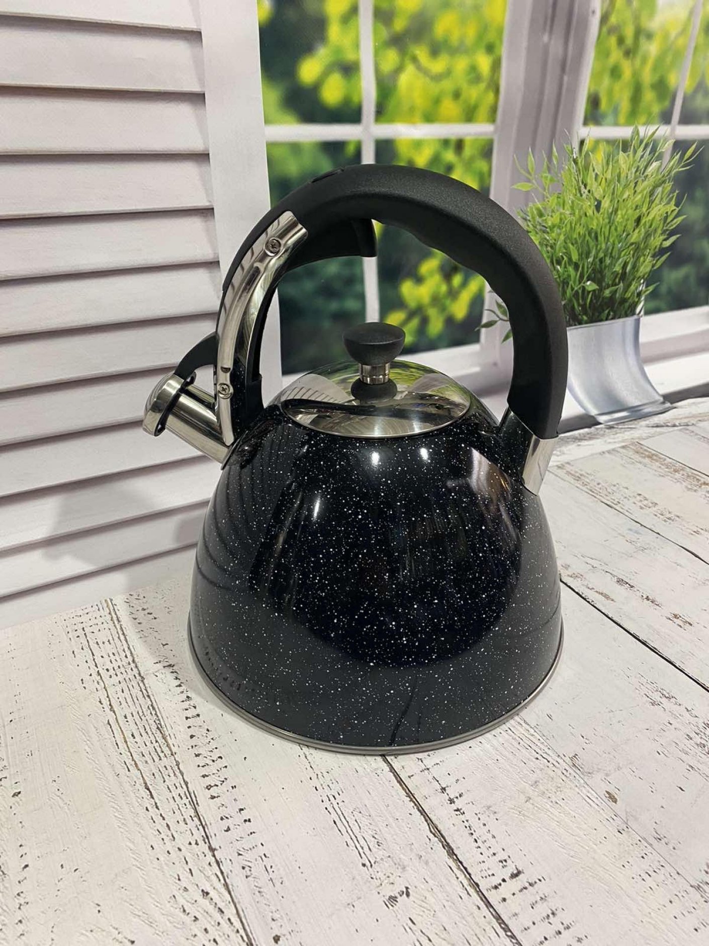 Чайник также оснащен свистком для оповещения о закипании воды. Герметичная крышка не пропускает пар, поэтому вода долго остается горячей. Прочное дно обеспечивает равномерное распределение тепла.
