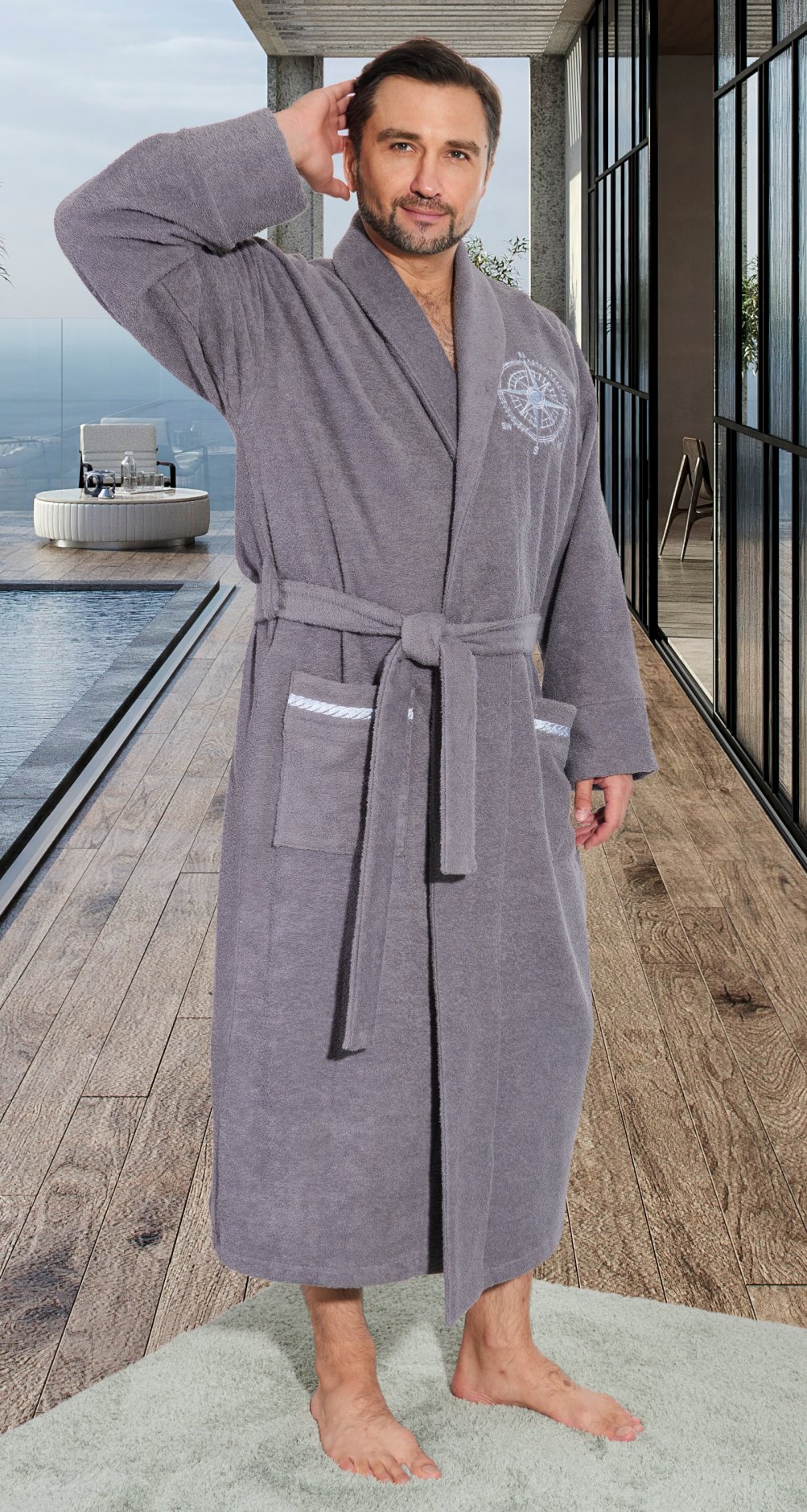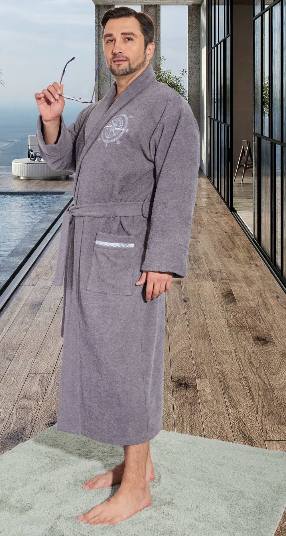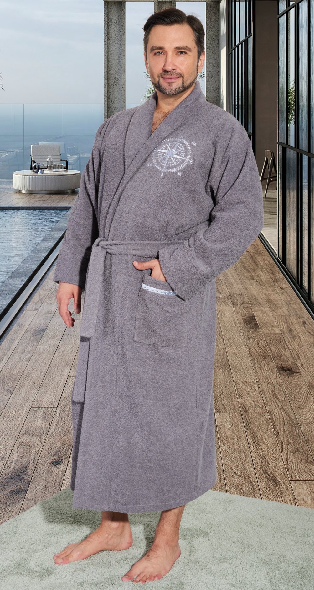 Каталог - ХЛОПКОВЫЕ ХАЛАТЫ - Мужской махровый халат с вышивкой полезный подарок