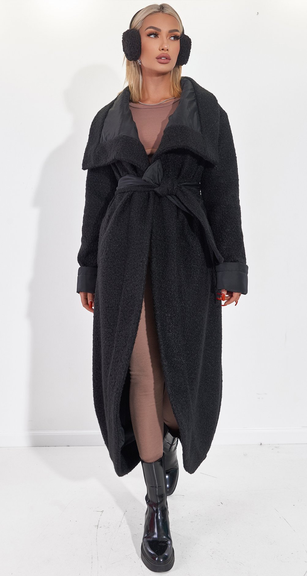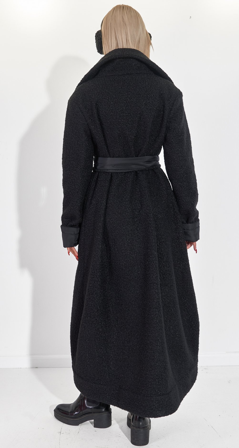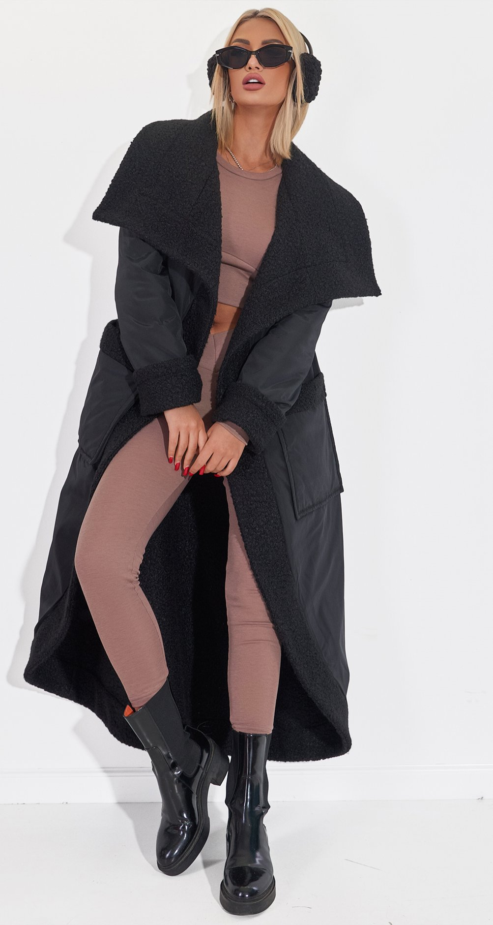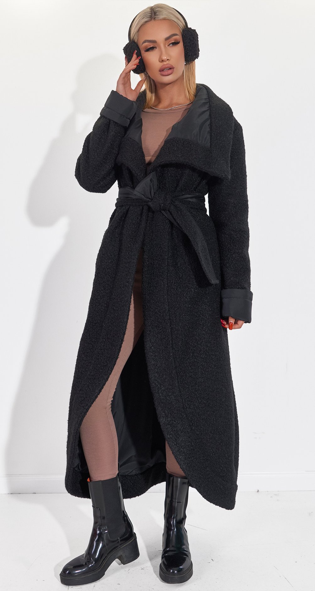 ​Длинный крой макси, стильный воротник с отворотами и отделка контрастным мехом по краю делают это пальто по-настоящему эффектным. Носите его нараспашку или подчеркните талию широким поясом.