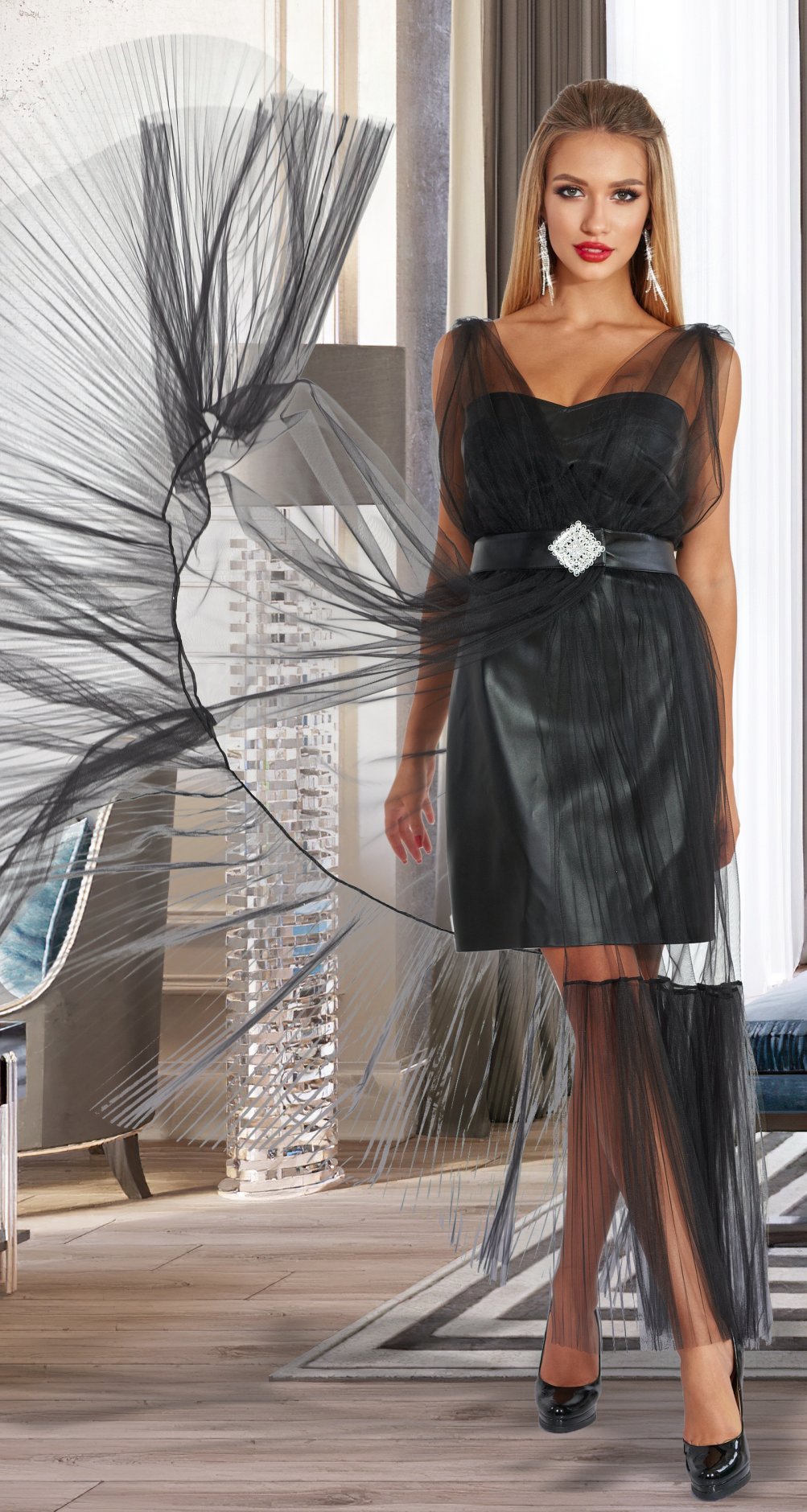 Идеальное кожаное платье без бретелей и роскошная накидка!