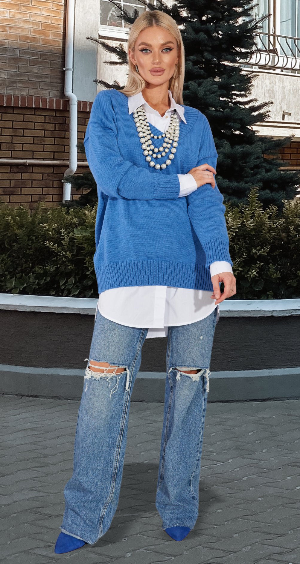 V вырез горловины позволит надеть его с рубашкой, гольфом или
