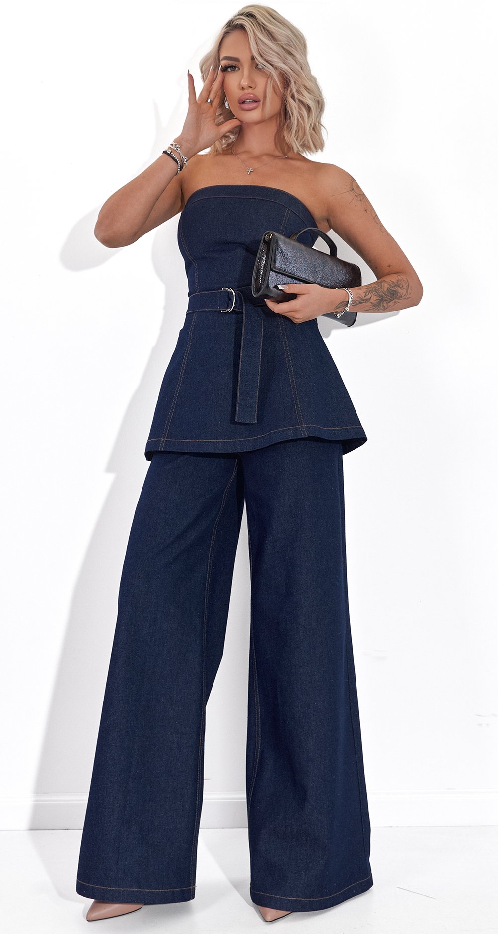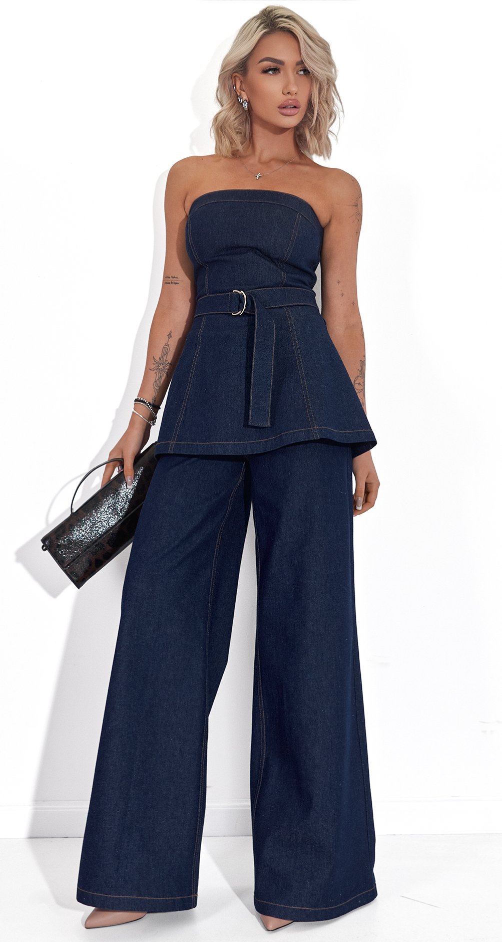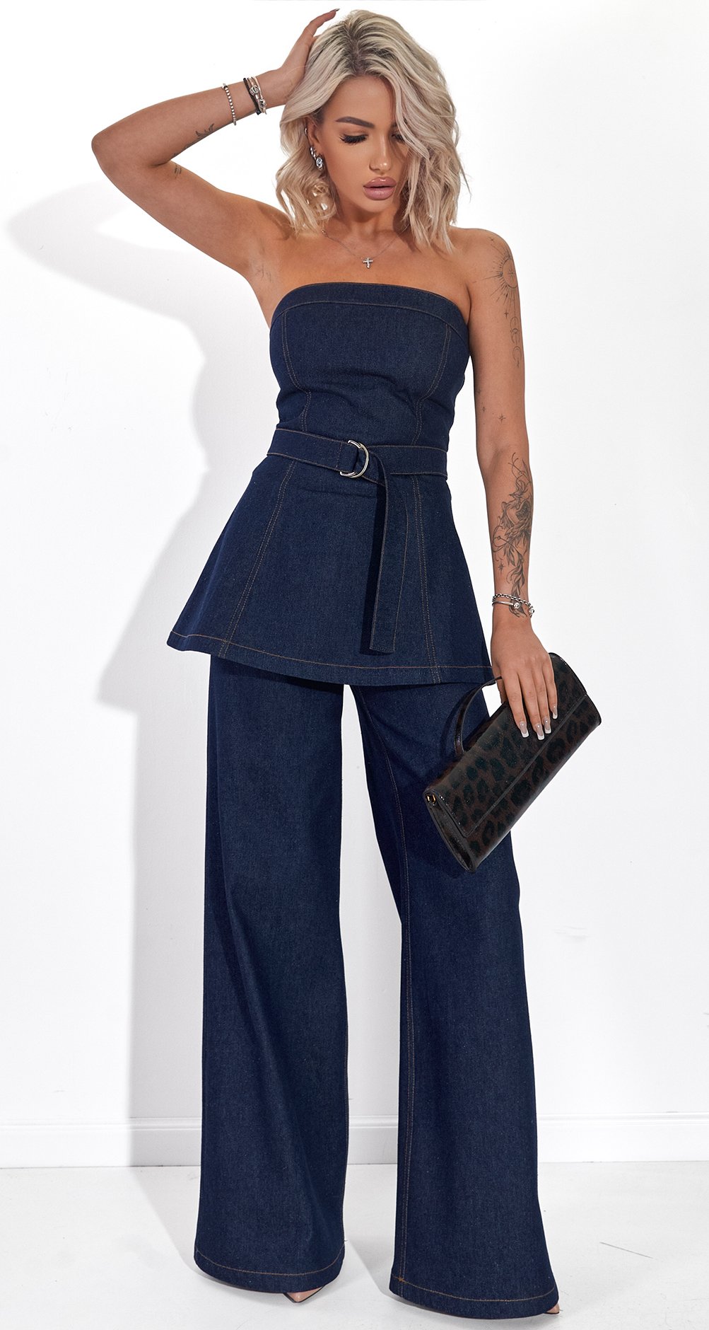 Представляем Ультрамодный джинсовый комплект: корсетный топ-бюстье с элегантным поясом и стильные брюки-палаццо с высокой посадкой.