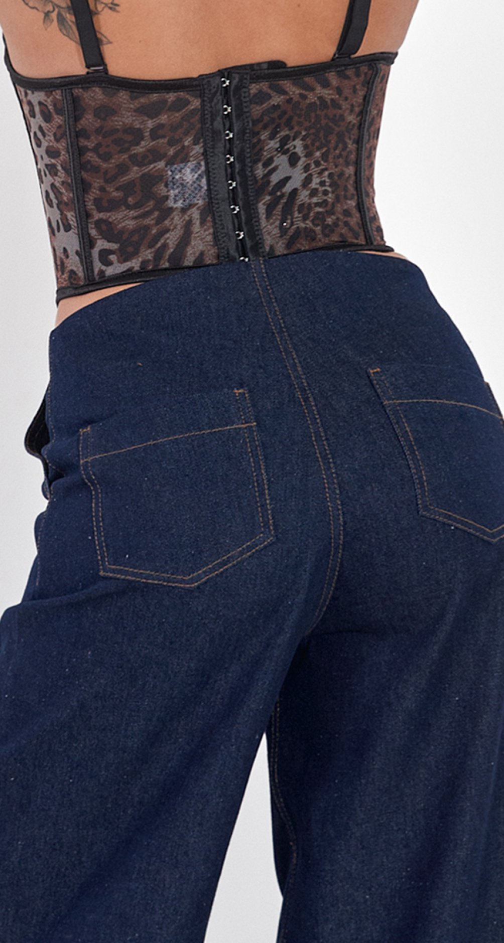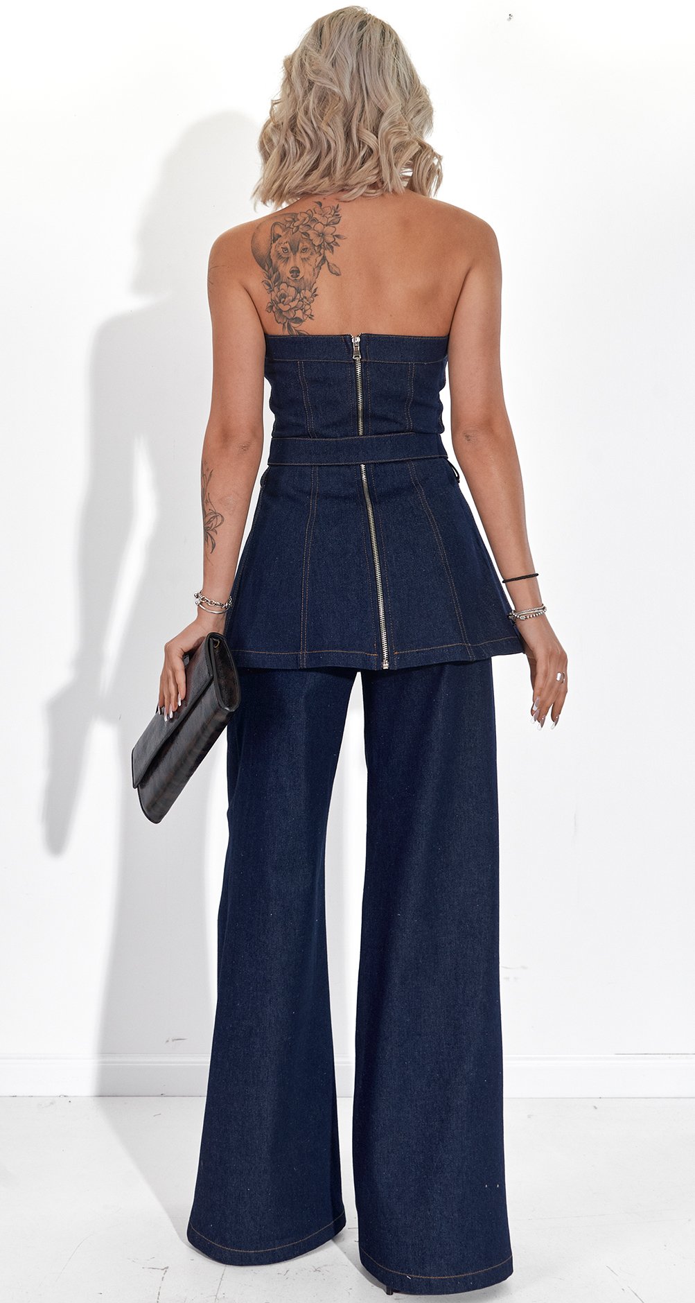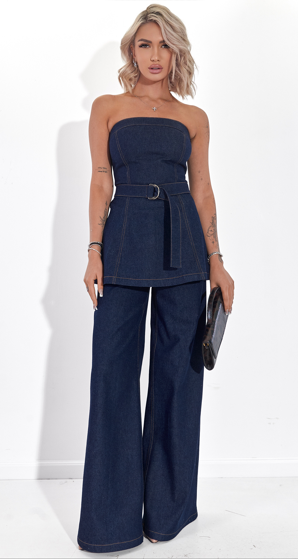 Представляем Ультрамодный джинсовый комплект: корсетный топ-бюстье с элегантным поясом и стильные брюки-палаццо с высокой посадкой.