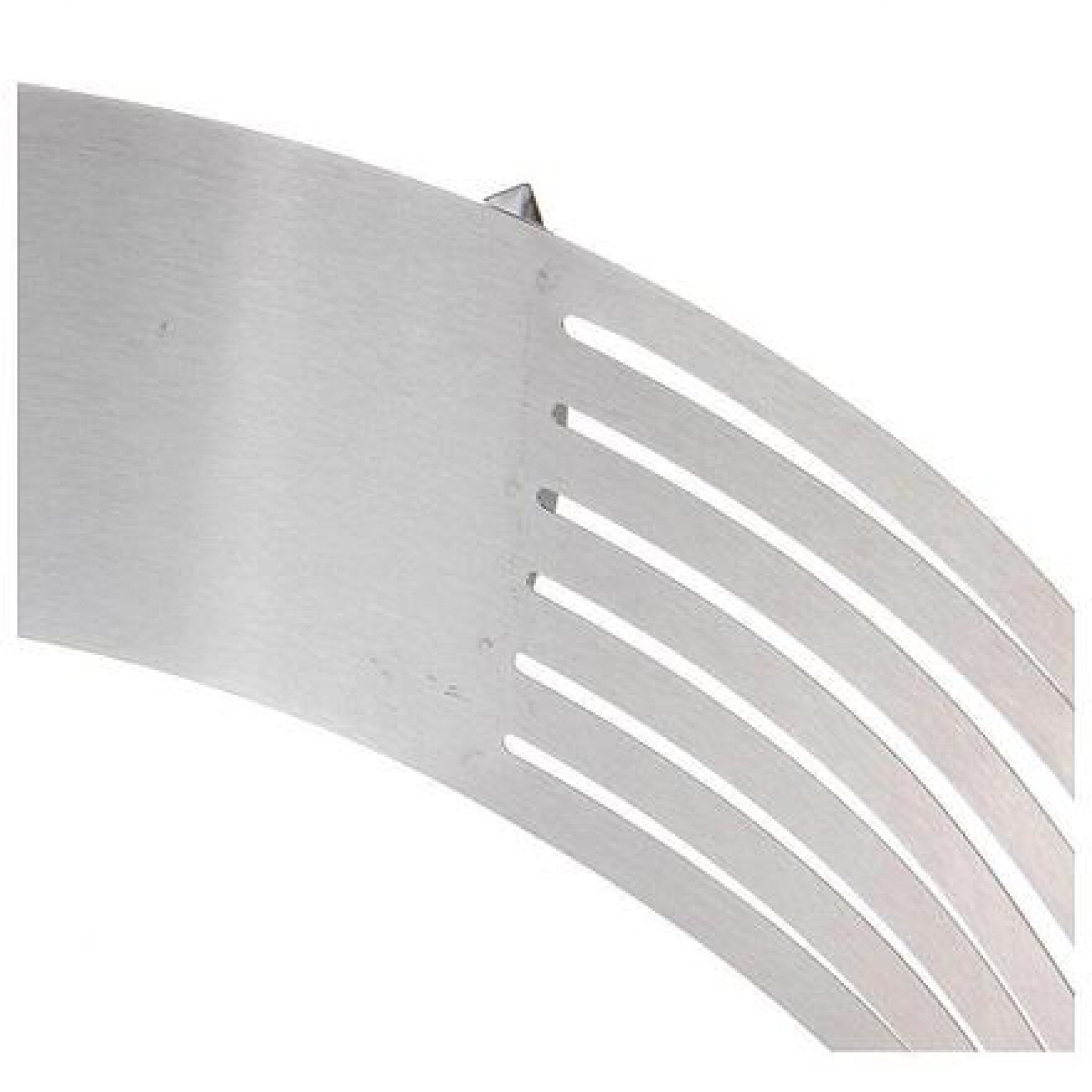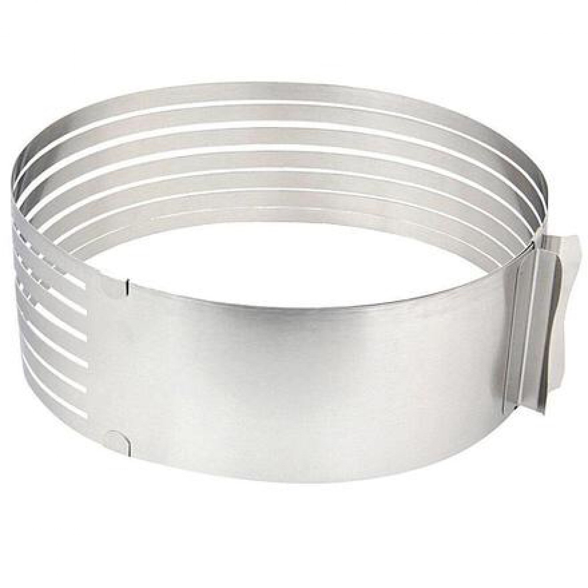Разъемная стальная форма с 6-ю отверстиями для ровной нарезки бисквита по горизонтали равномерными пластами, вырезания коржей, сборки тортов. Диаметр можно плавно изменять по своему усмотрению.