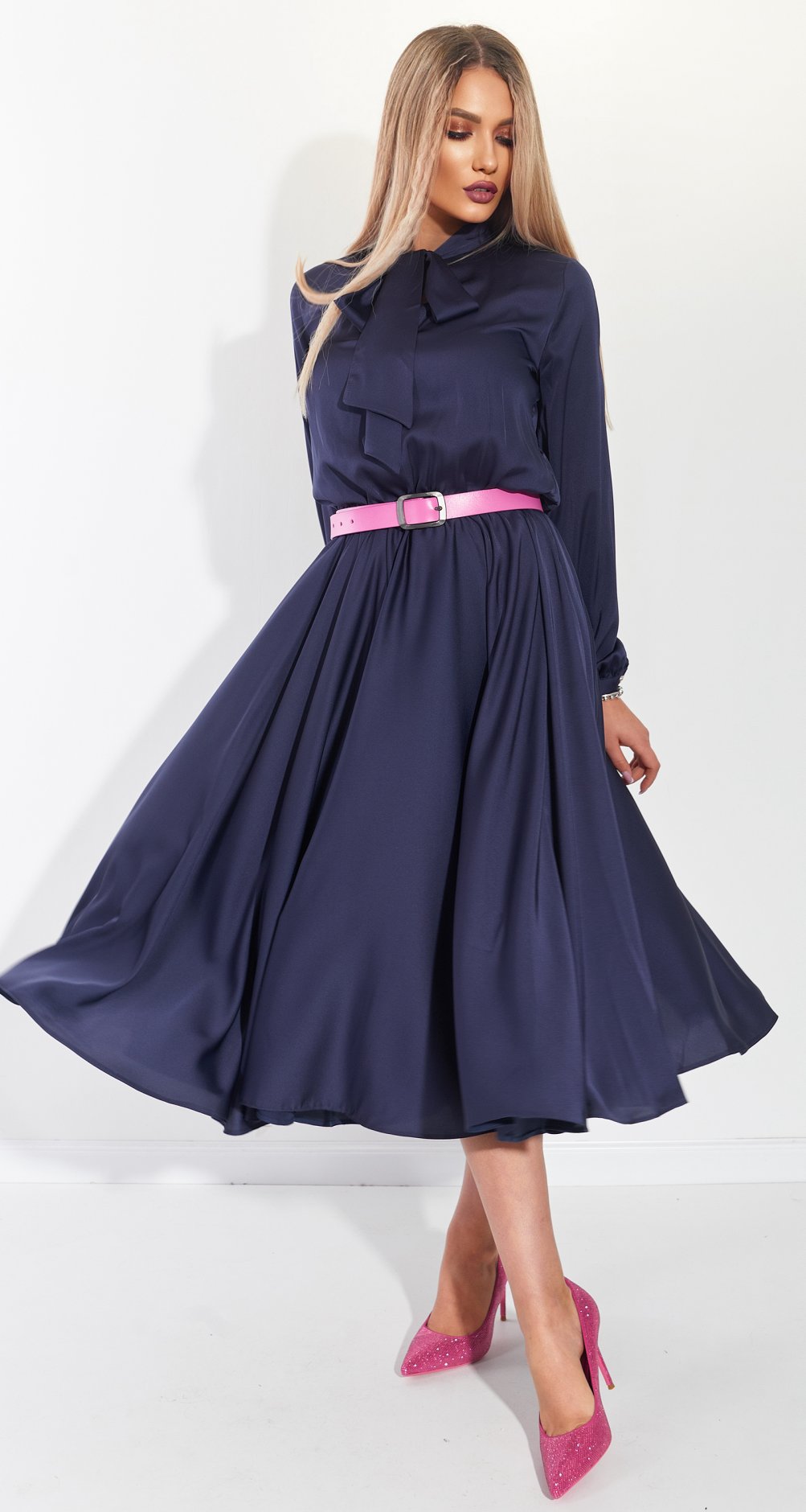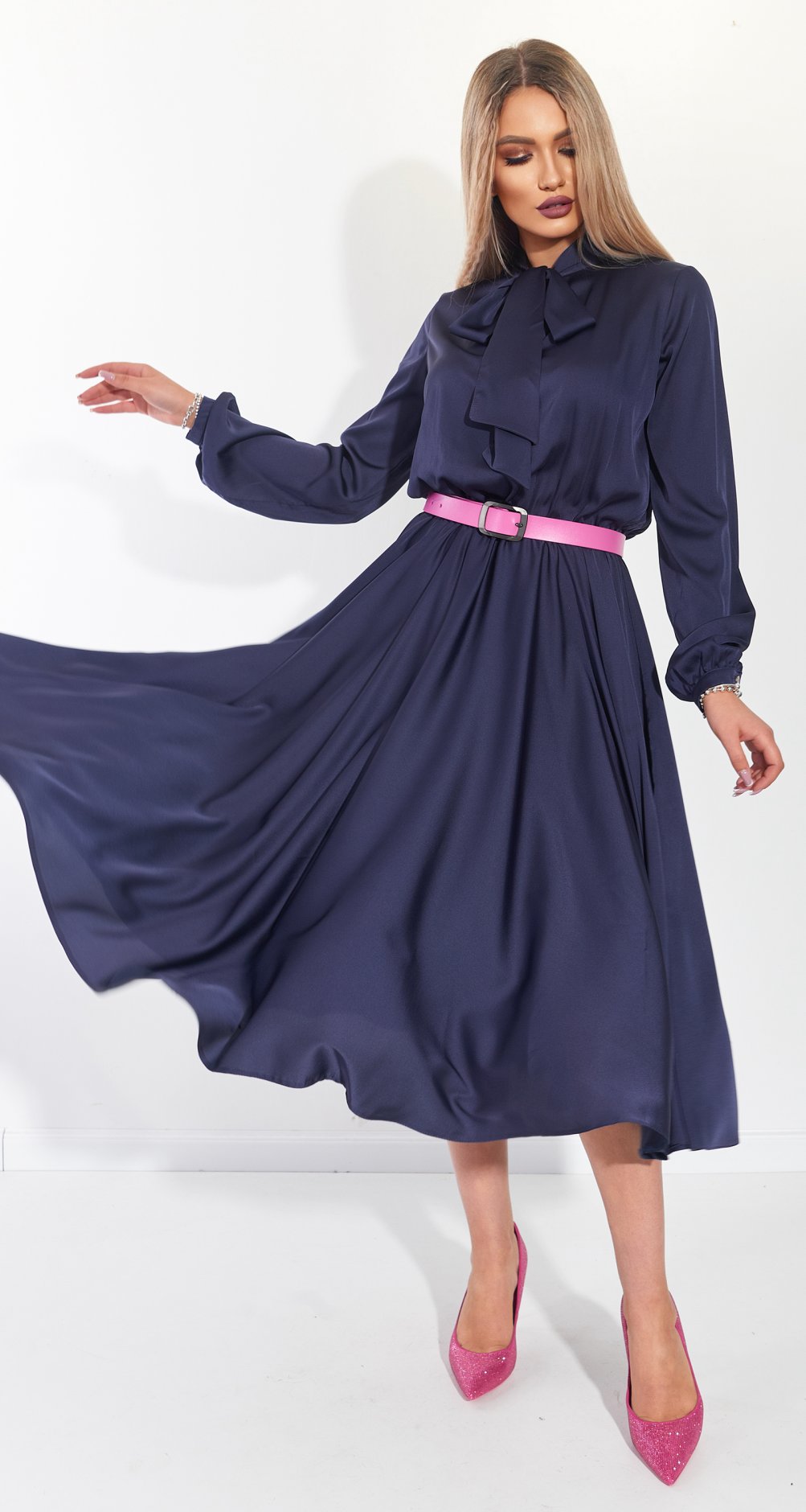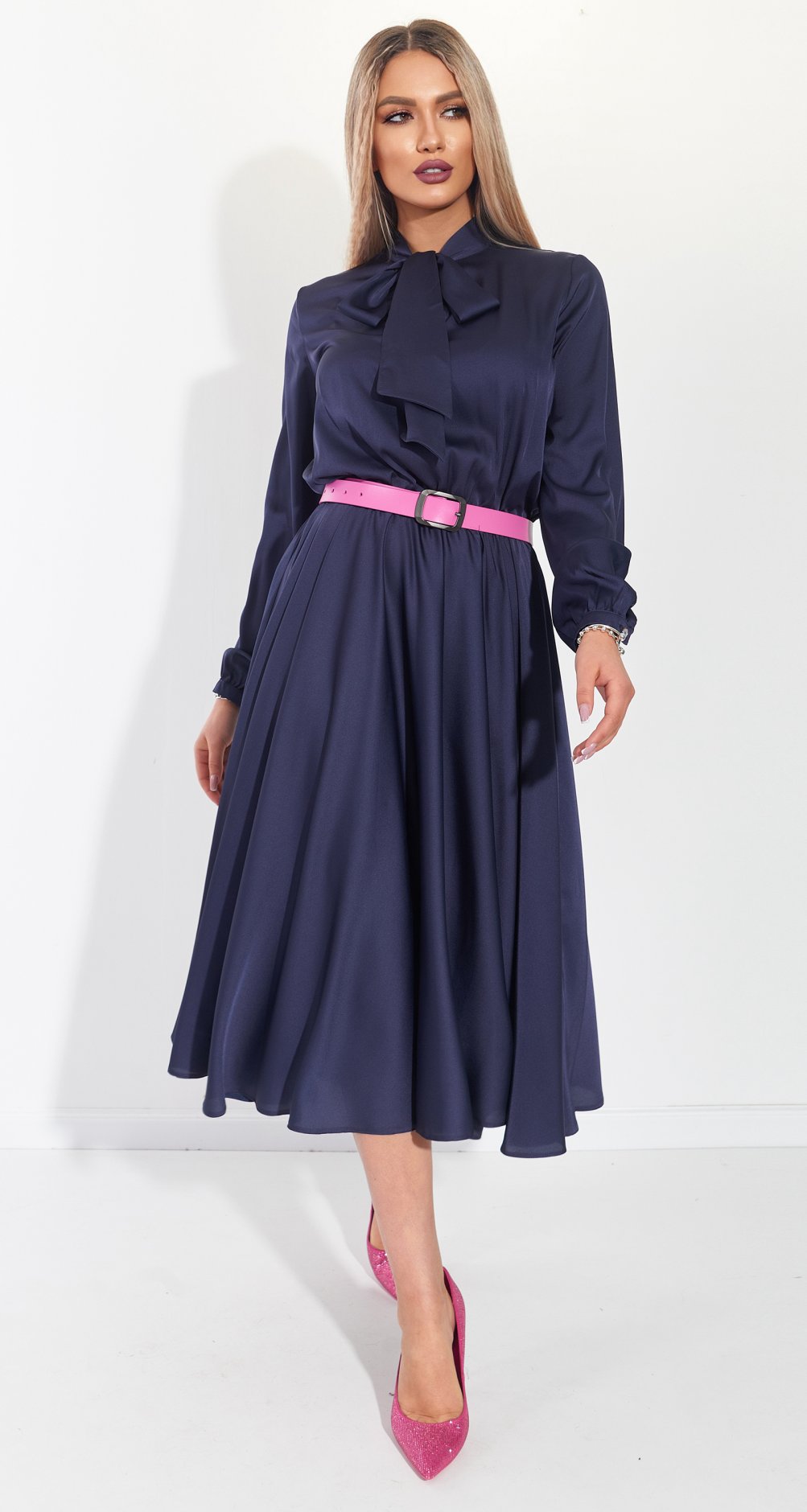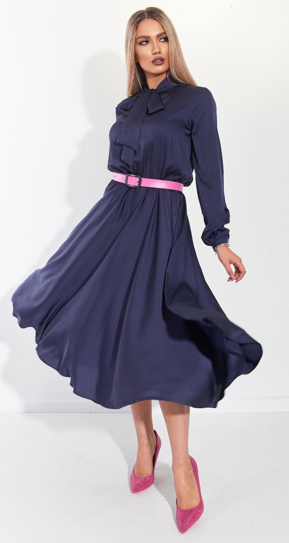 Струящаяся юбка и лаконичный верх с бантом и не большим напуском.