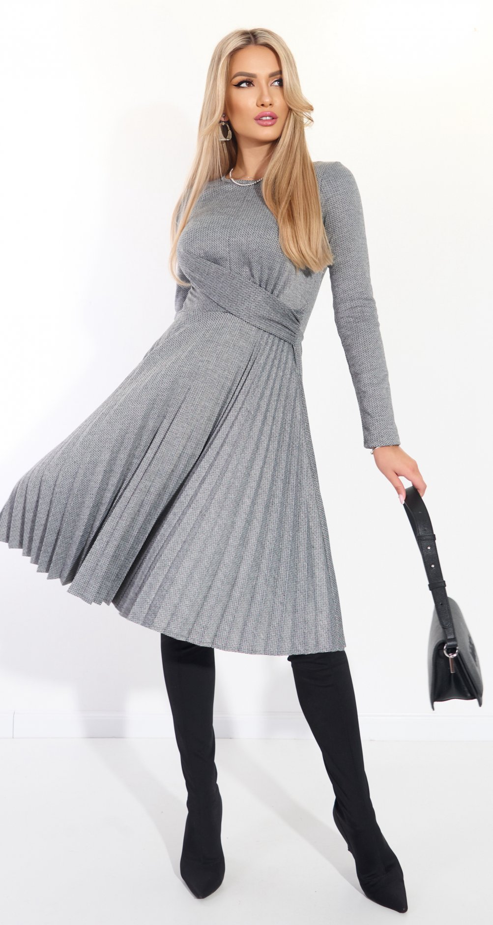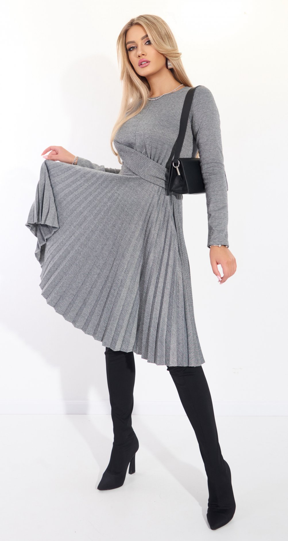 Необычный крой с расклешенной юбкой в складку и асимметричными деталями лифа!